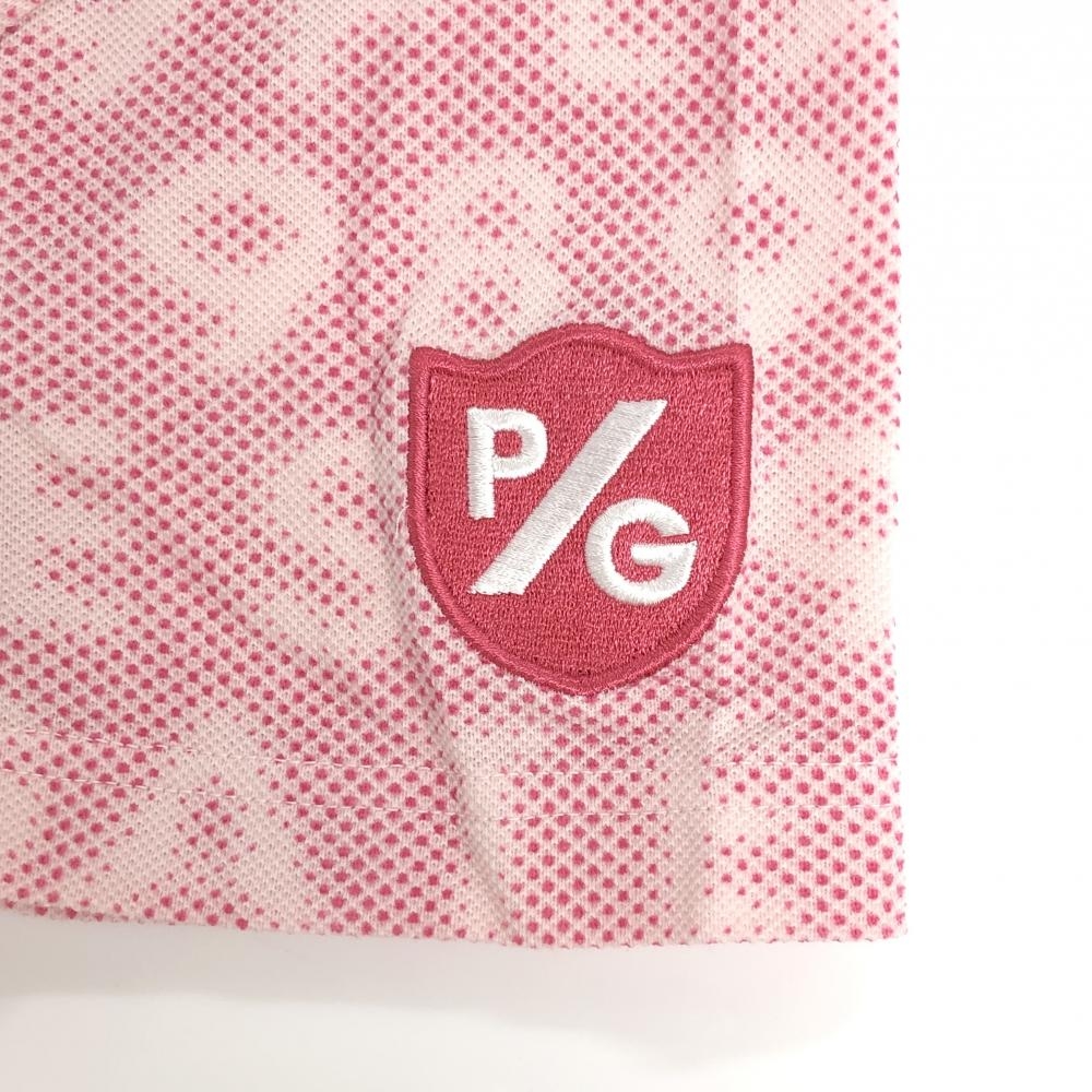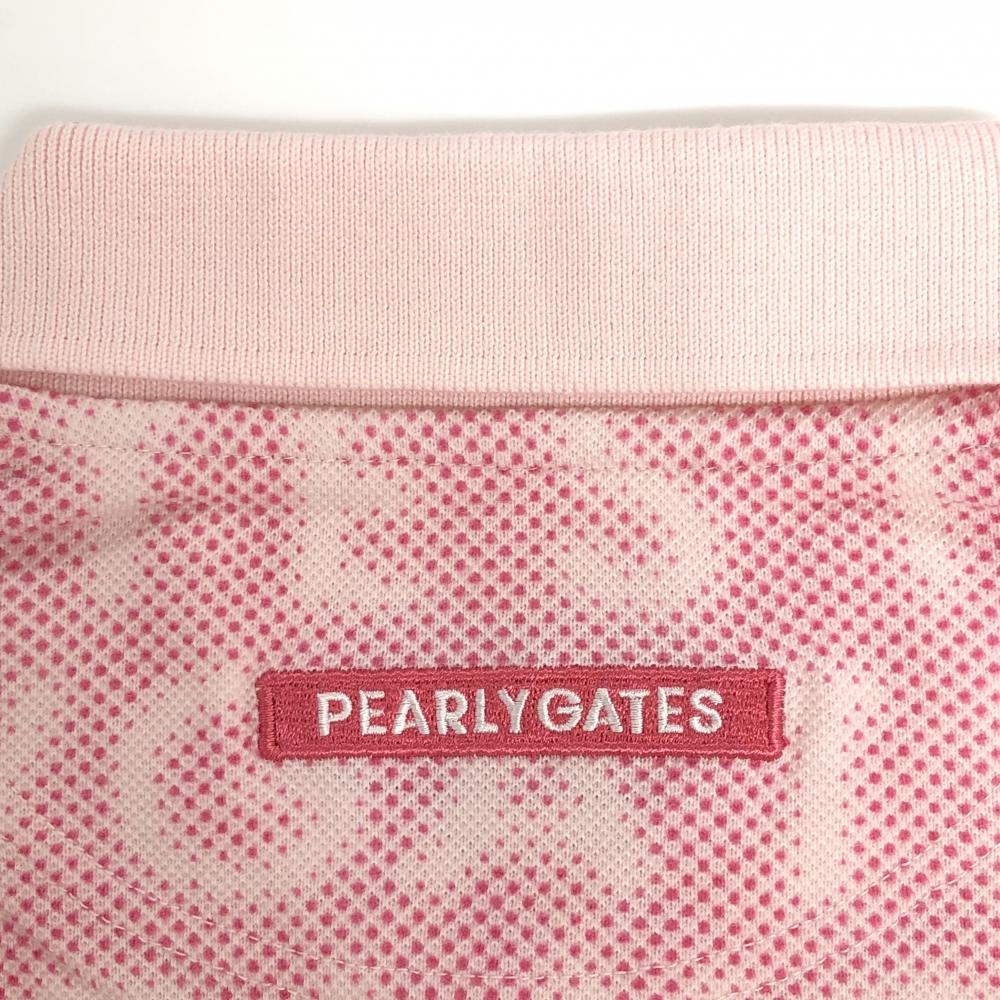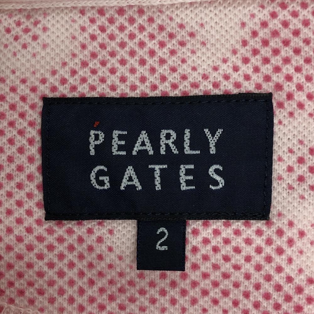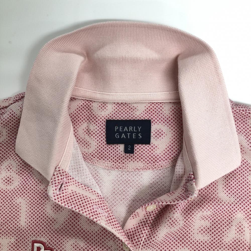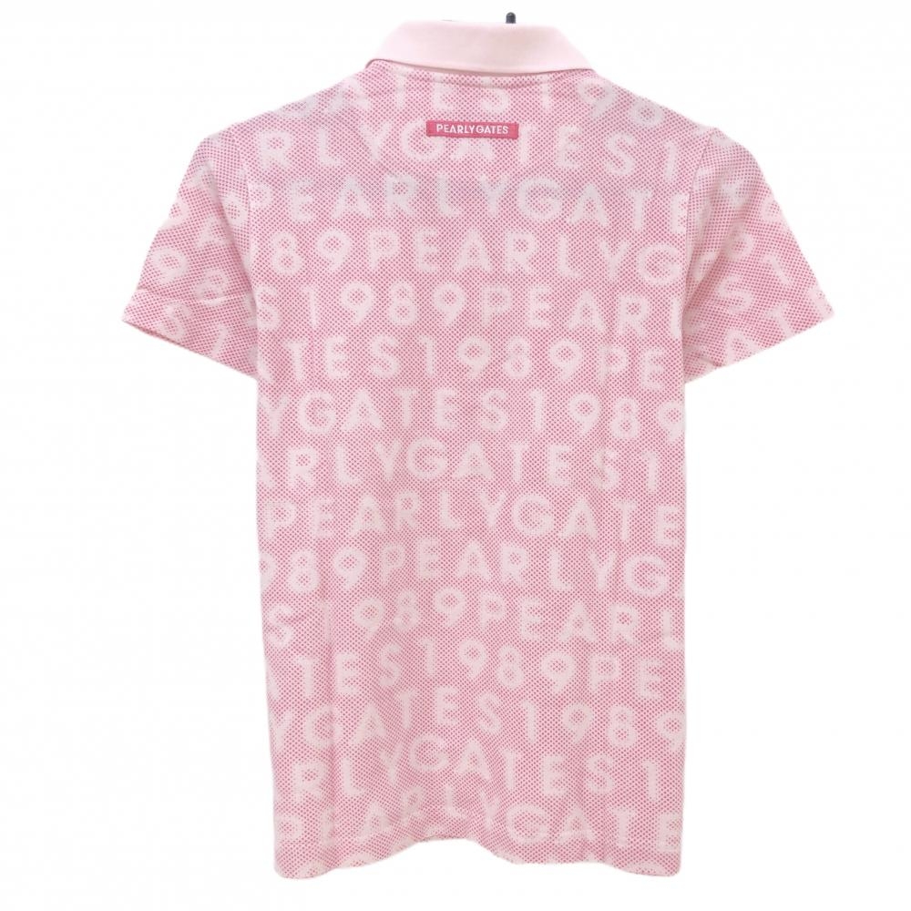 【美品】パーリーゲイツ 半袖ポロシャツ ピンク ロゴ総柄 ワッペン レディース 2(L) ゴルフウェア 2023年モデル PEARLY GATES