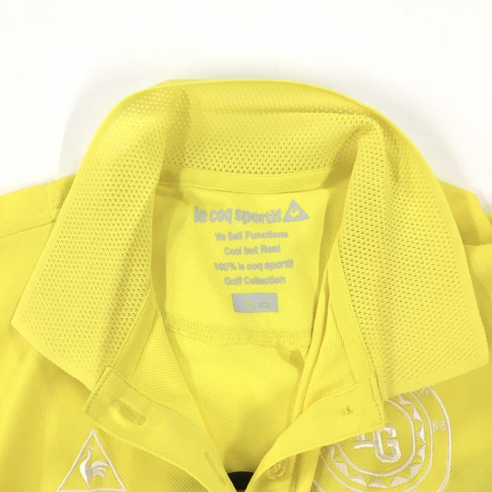 【美品】ルコックゴルフ 半袖ポロシャツ イエロー 襟・袖口メッシュニット レディース L ゴルフウェア le coq sportif