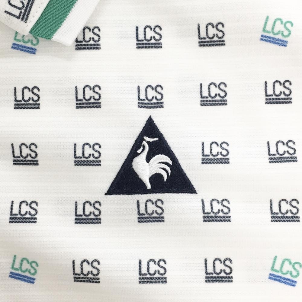 【超美品】ルコックゴルフ 半袖ポロシャツ 白×黒 ロゴ総柄 レディース M ゴルフウェア le coq sportif