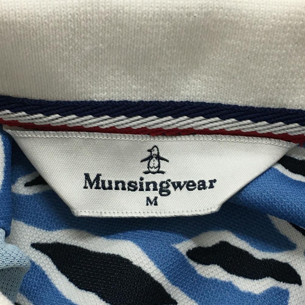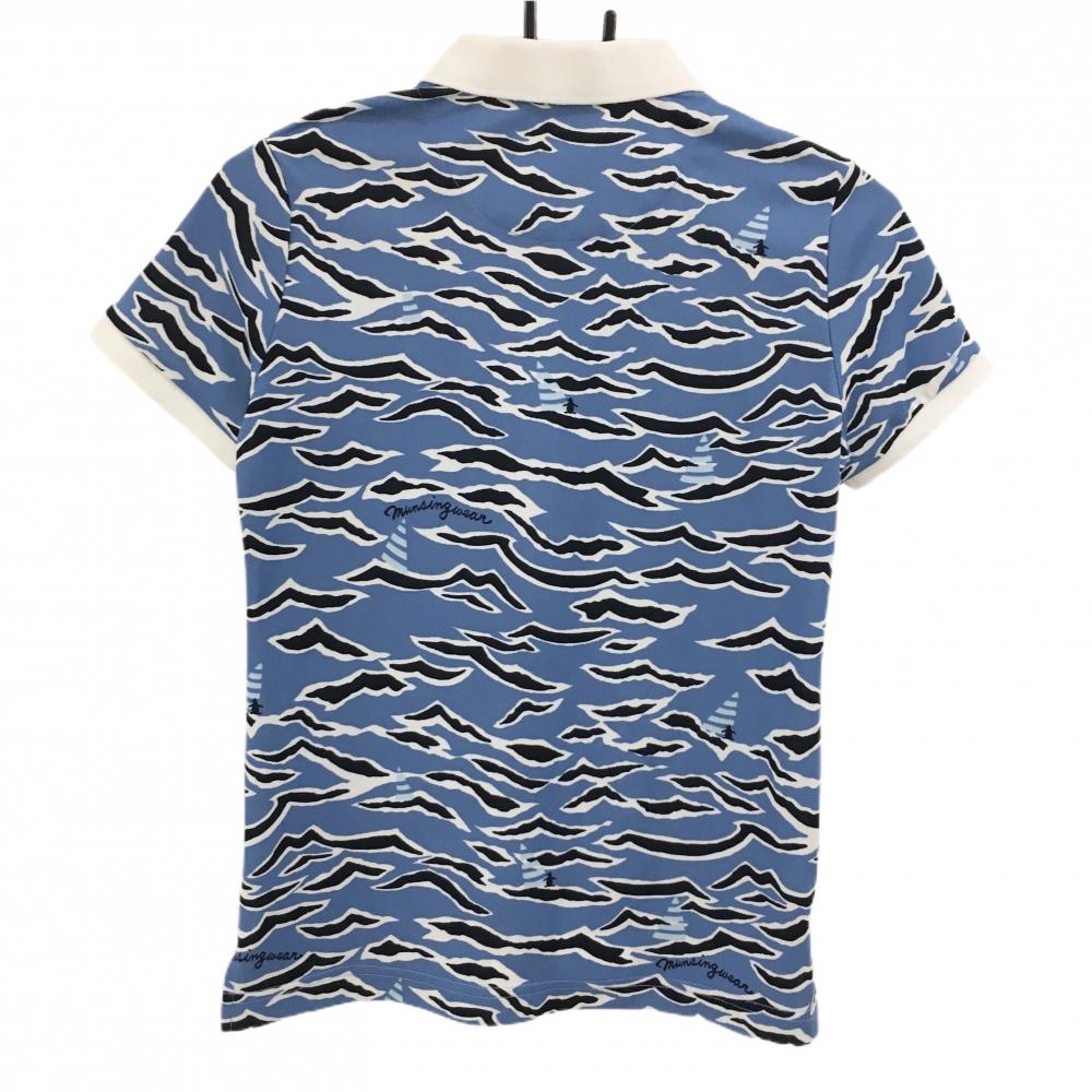 マンシングウェア 半袖ポロシャツ ブルー×ネイビー 総柄 レディース M ゴルフウェア Munsingwear