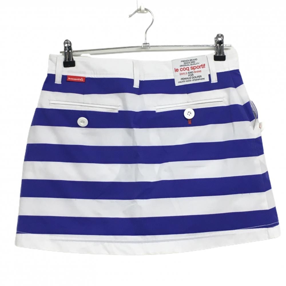 ルコックゴルフ スカート 白×パープルネイビー ボーダー 内側インナーパンツ レディース 11 ゴルフウェア le coq sportif