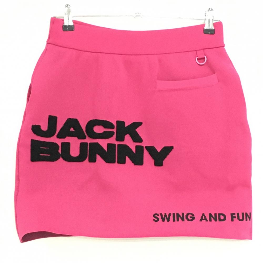 【美品】ジャックバニー ニットスカート ピンク×黒 パイルロゴ レディース 1(M) ゴルフウェア 2024年モデル Jack Bunny