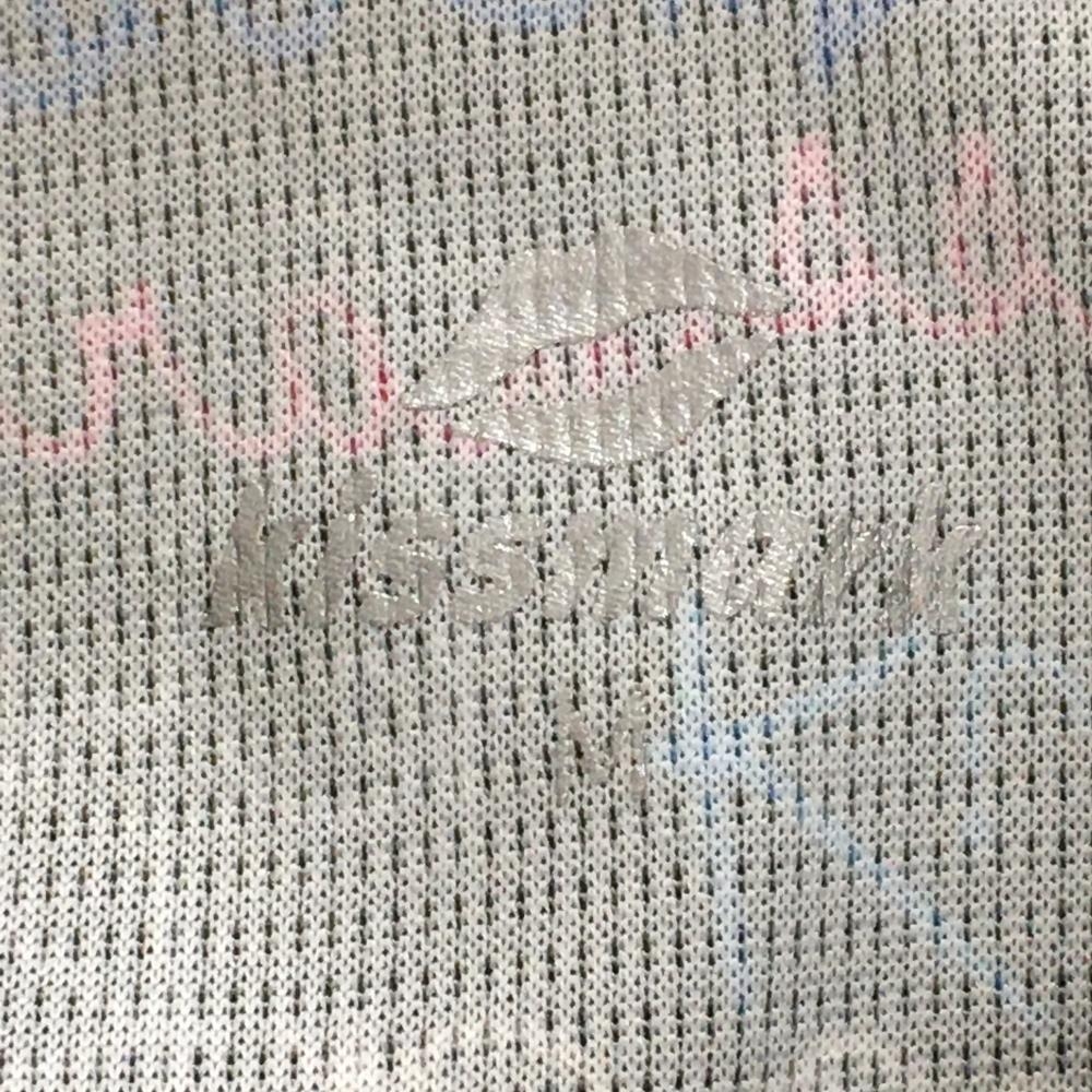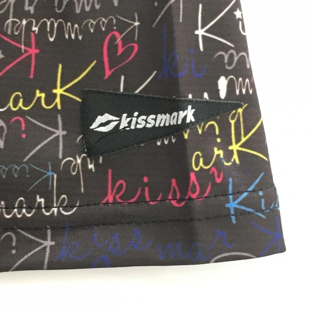 【超美品】キスマーク 半袖ポロシャツ ダークブラウン×マルチカラー ロゴ総柄 レディース M ゴルフウェア kissmark