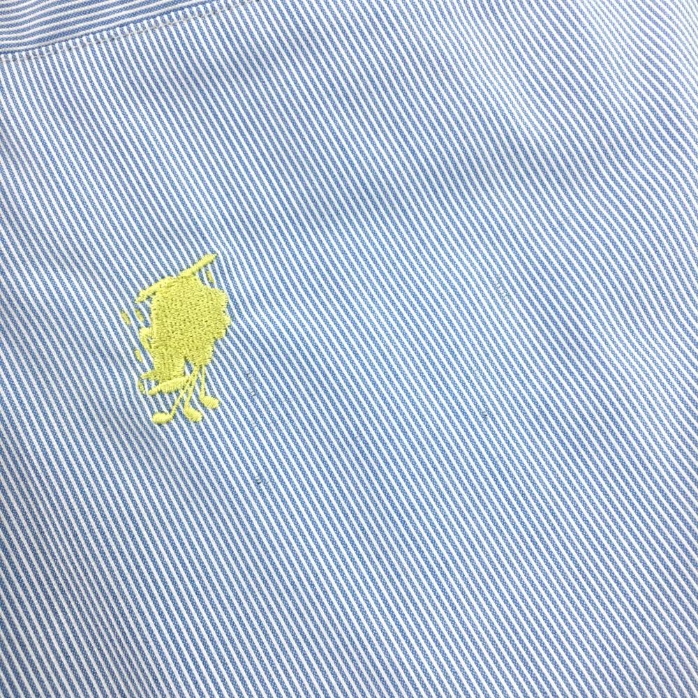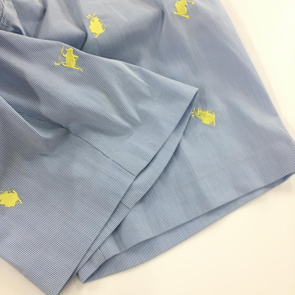 マンシングウェア ハーフパンツ ライトブルー×白 細ストライプ ペンギン刺しゅうイエロー メンズ M ゴルフウェア Munsingwear