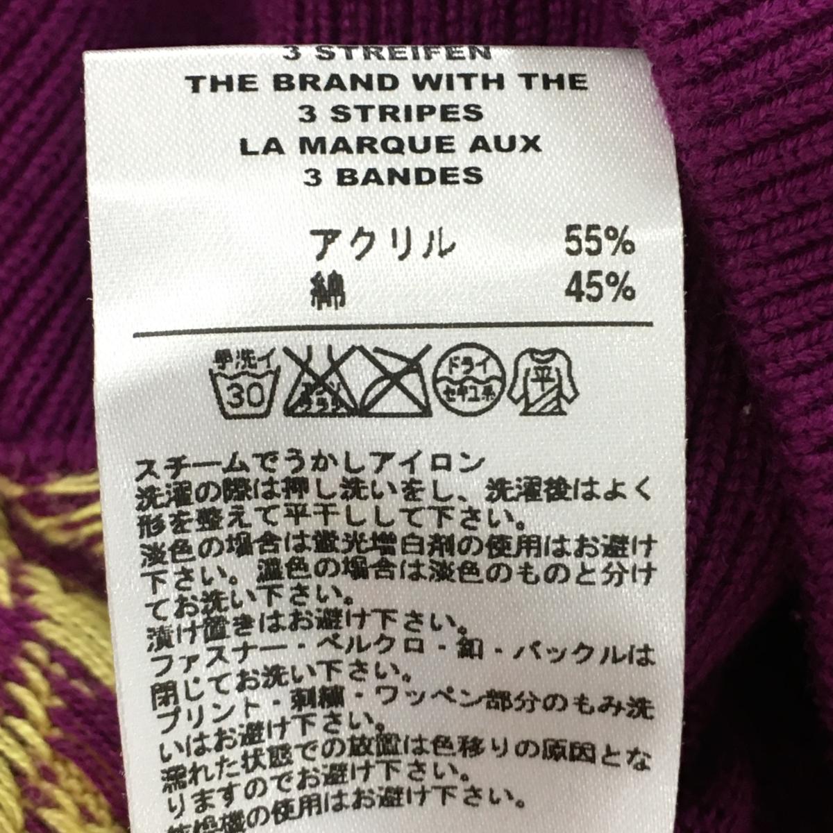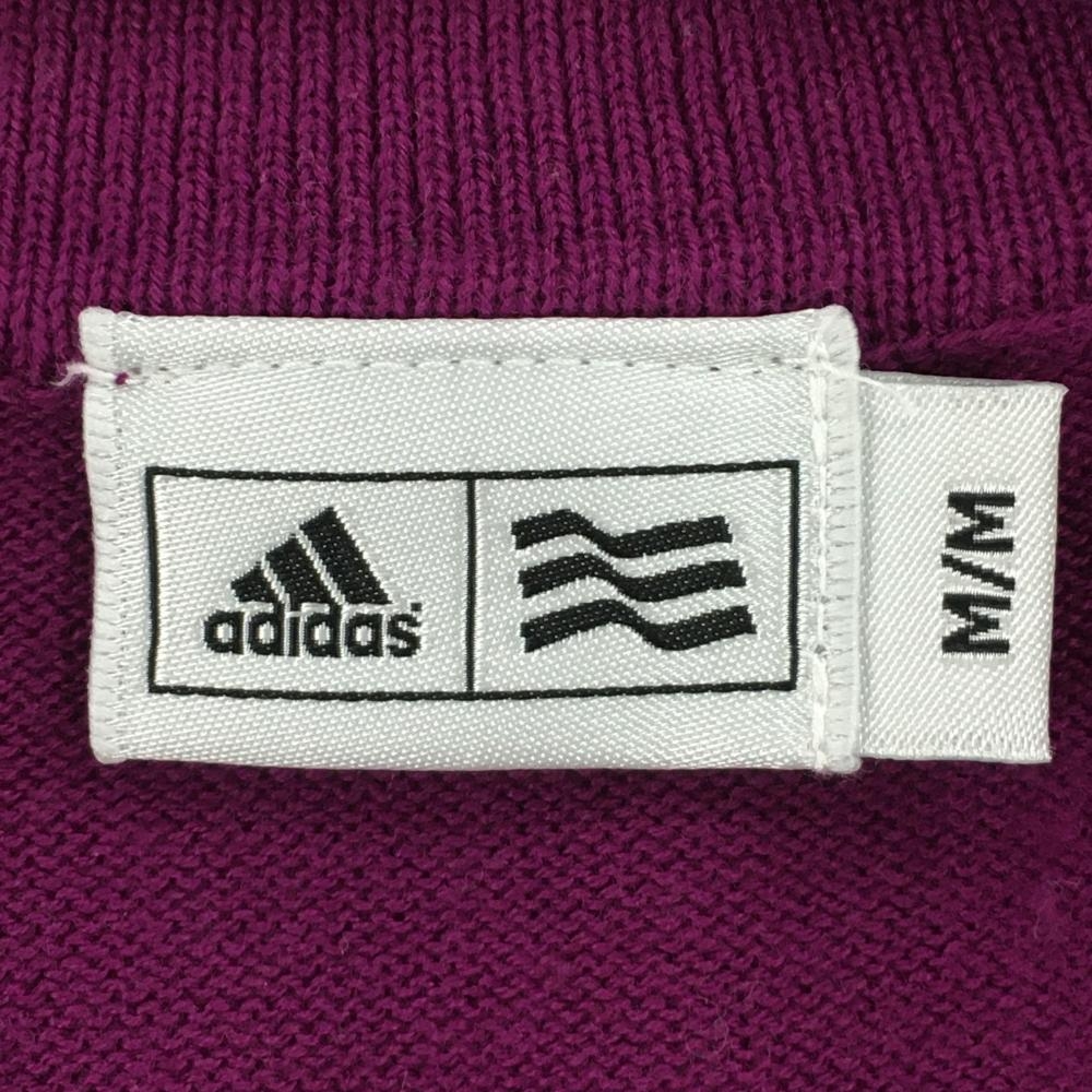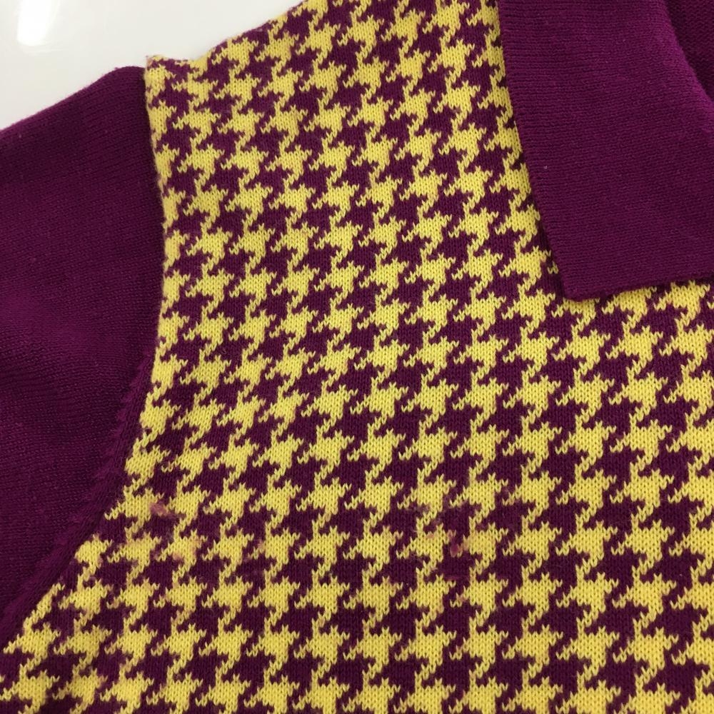 【美品】アディダス 半袖ニットポロシャツ パープル×イエロー 千鳥格子 袖ロゴ ハーフジップ レディース M ゴルフウェア adidas