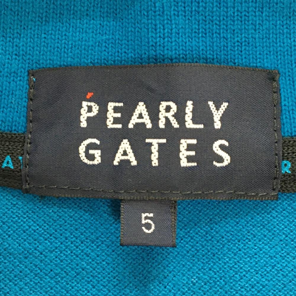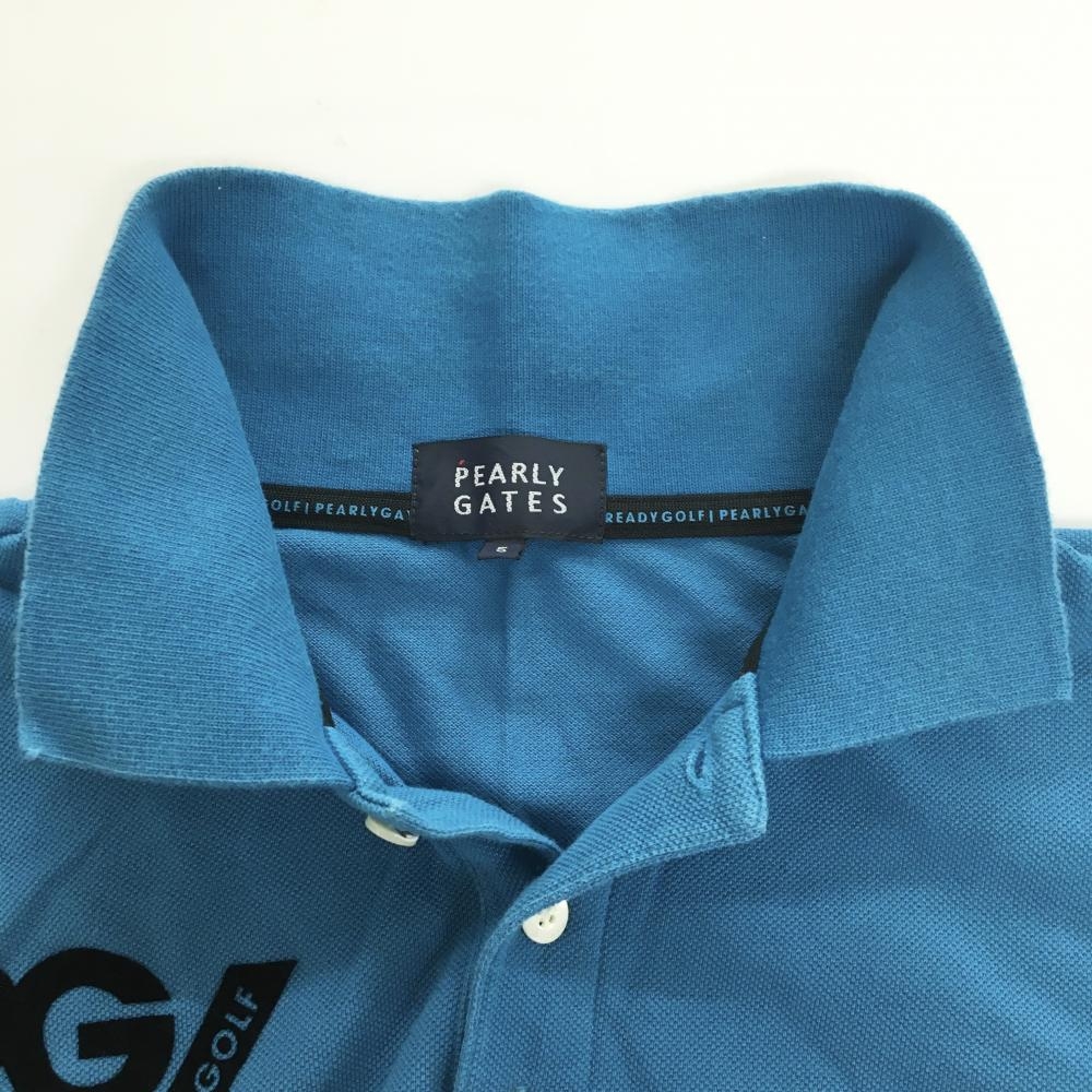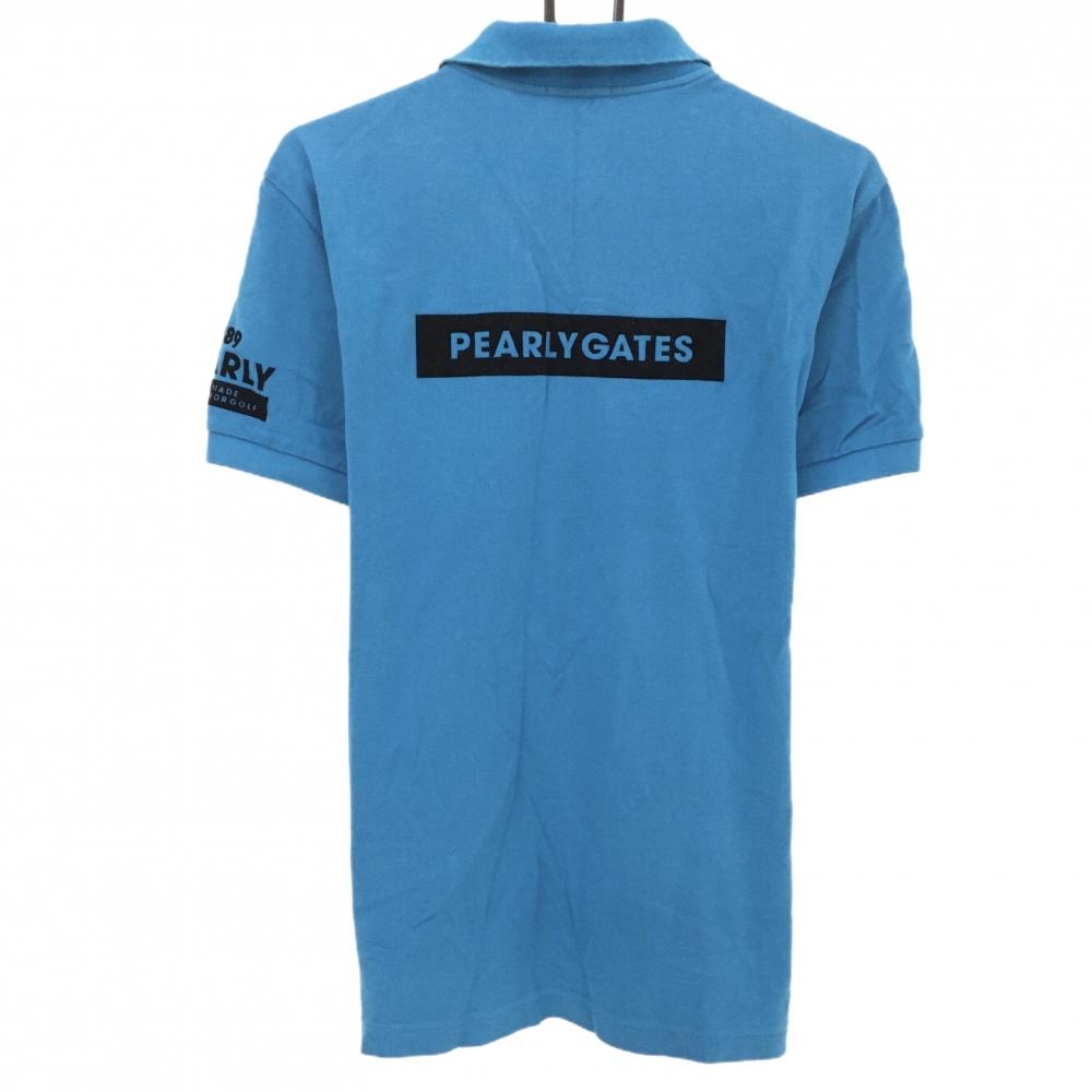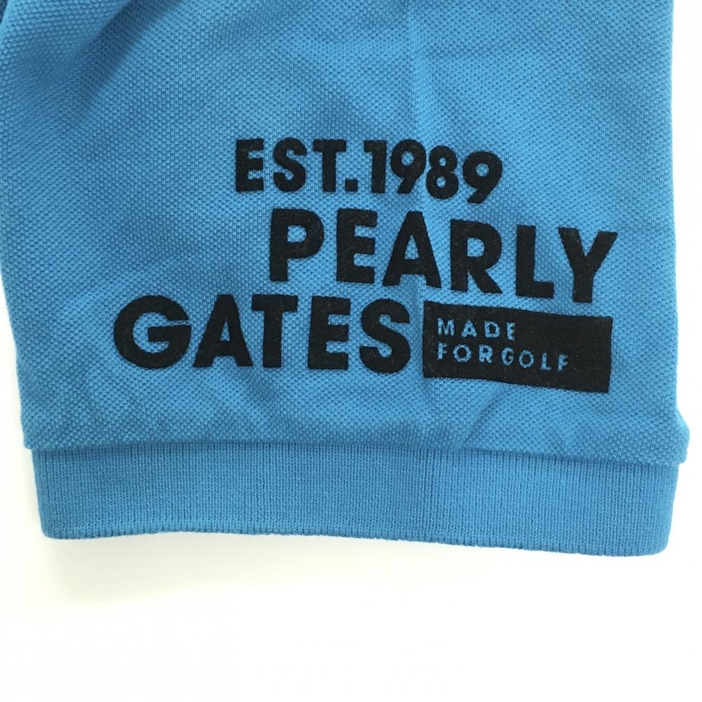 パーリーゲイツ 半袖ポロシャツ ライトブルー×黒 フロッキープリント コットン100% メンズ 5(L) ゴルフウェア PEARLY GATES