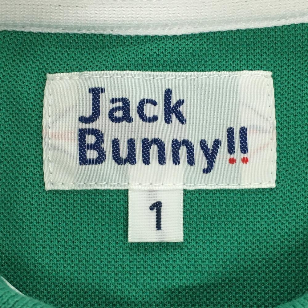 ジャックバニー 半袖ポロシャツ グリーン系×白×ネイビー フロントロゴプリント レディース 1(M) ゴルフウェア Jack Bunny