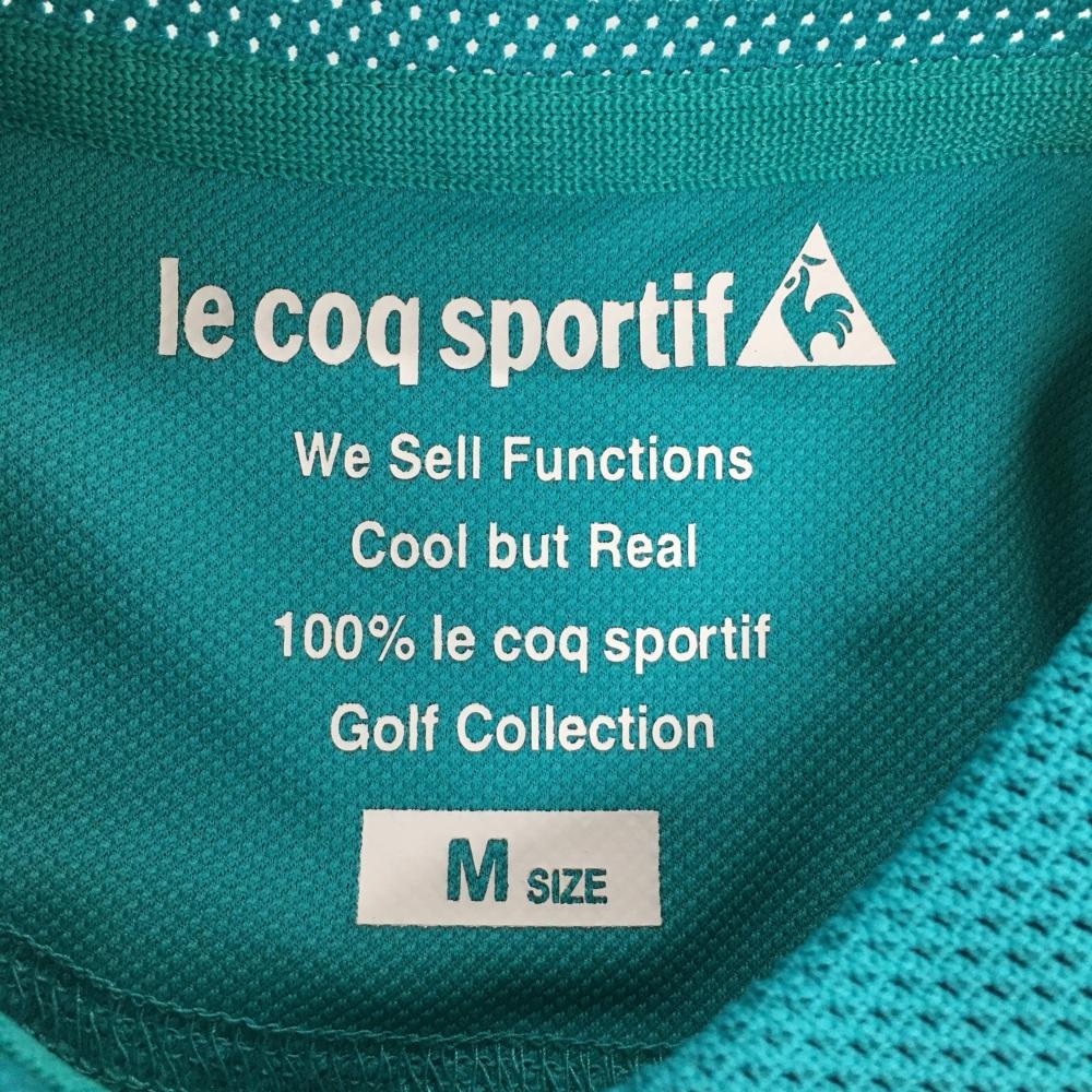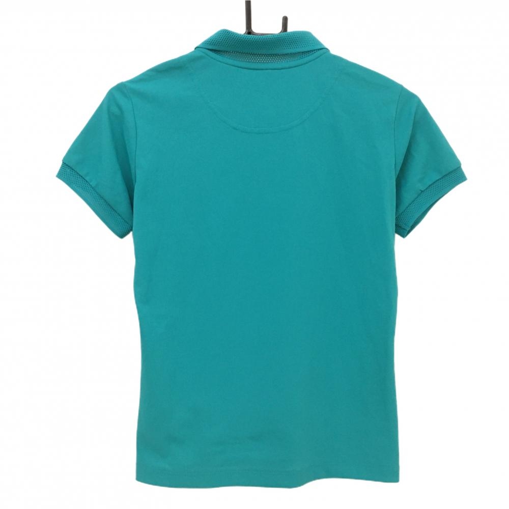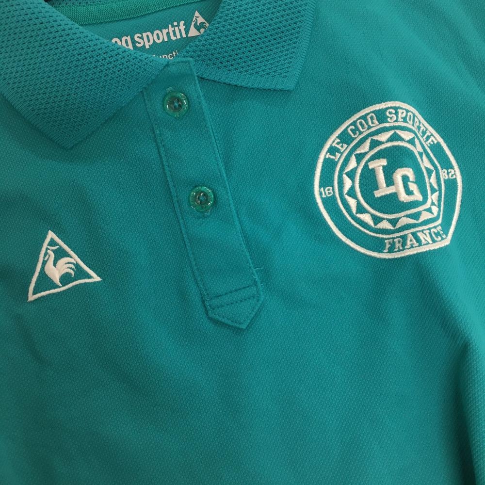 【美品】ルコックゴルフ 半袖ポロシャツ ブルーグリーン ロゴ白 襟・袖口メッシュ レディース M ゴルフウェア le coq sportif