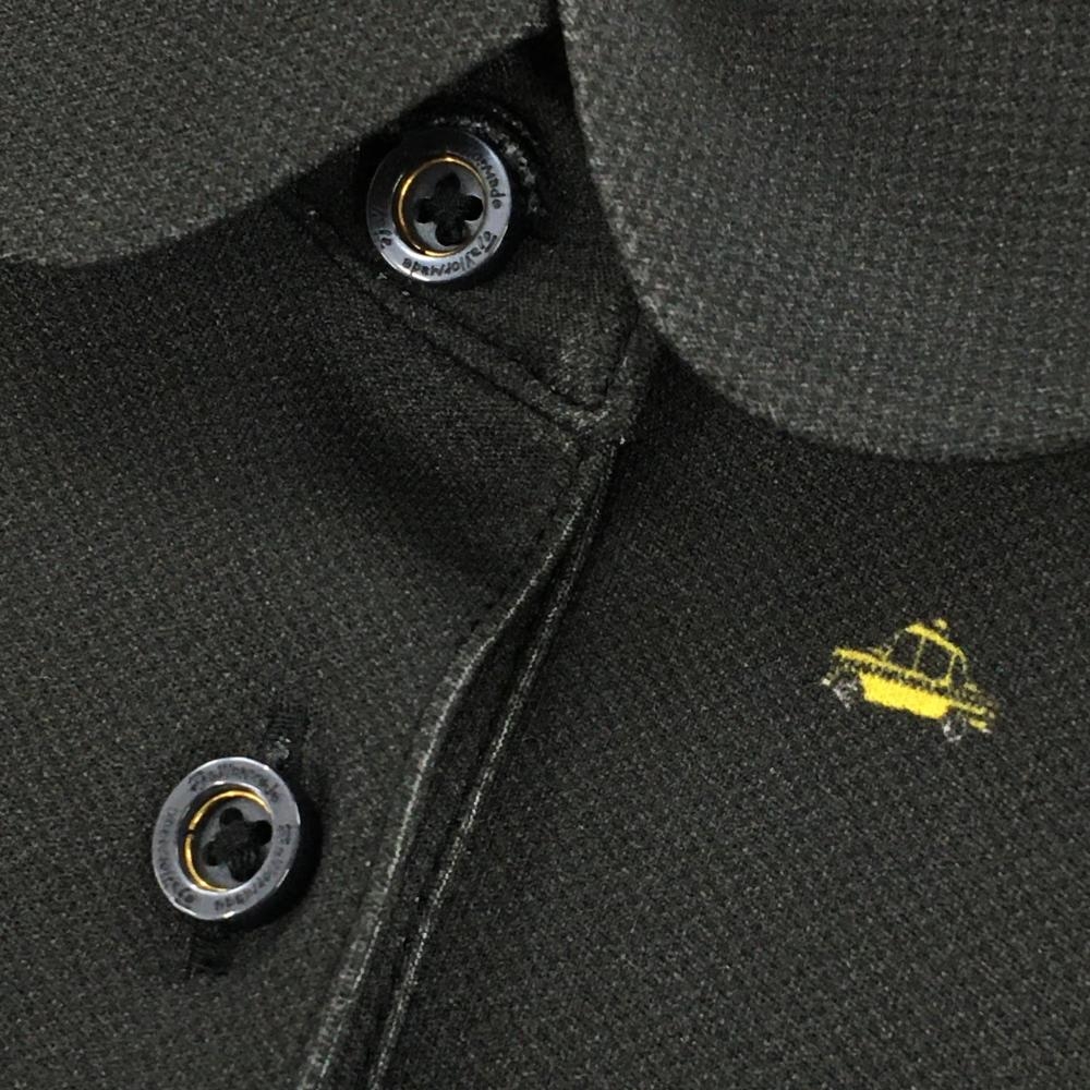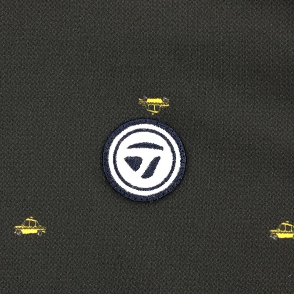 【美品】テーラーメイド 半袖ポロシャツ 黒系×イエロー 車柄 胸元ワッペン レディース M ゴルフウェア TaylorMade