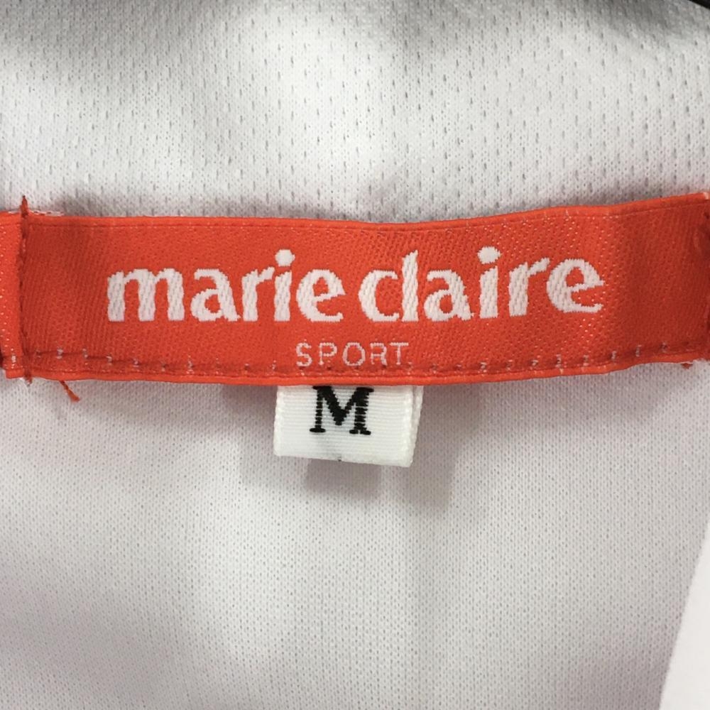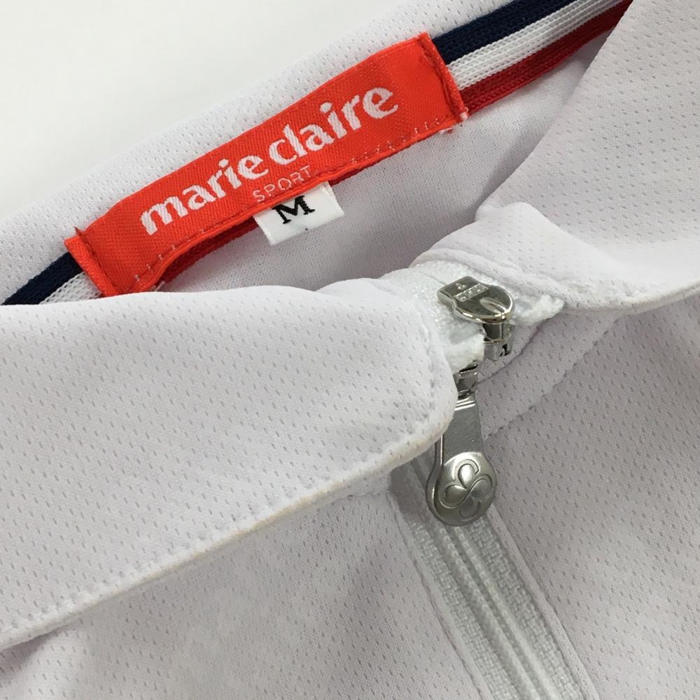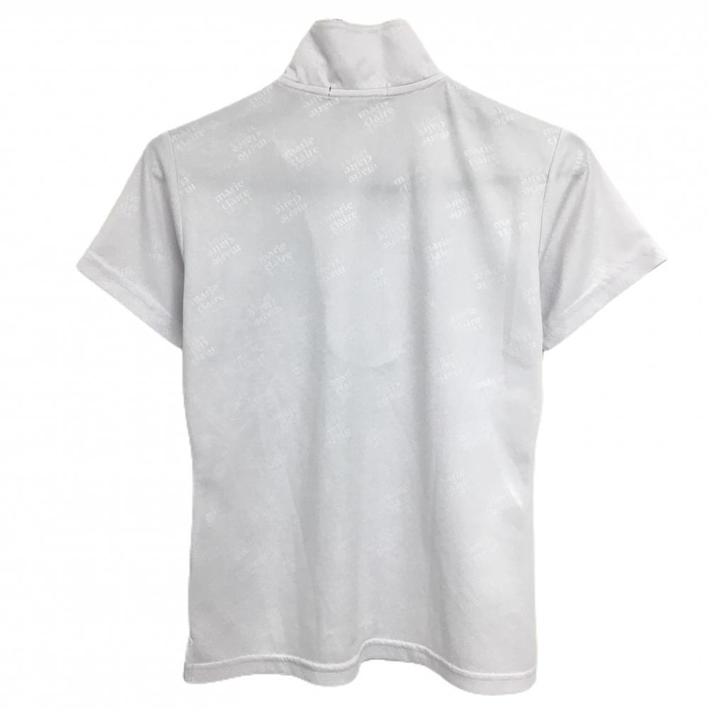マリクレールスポール 半袖ハイネックシャツ 白×ブルー ロゴ地模様 ハーフジップ レディース M ゴルフウェア marie claire