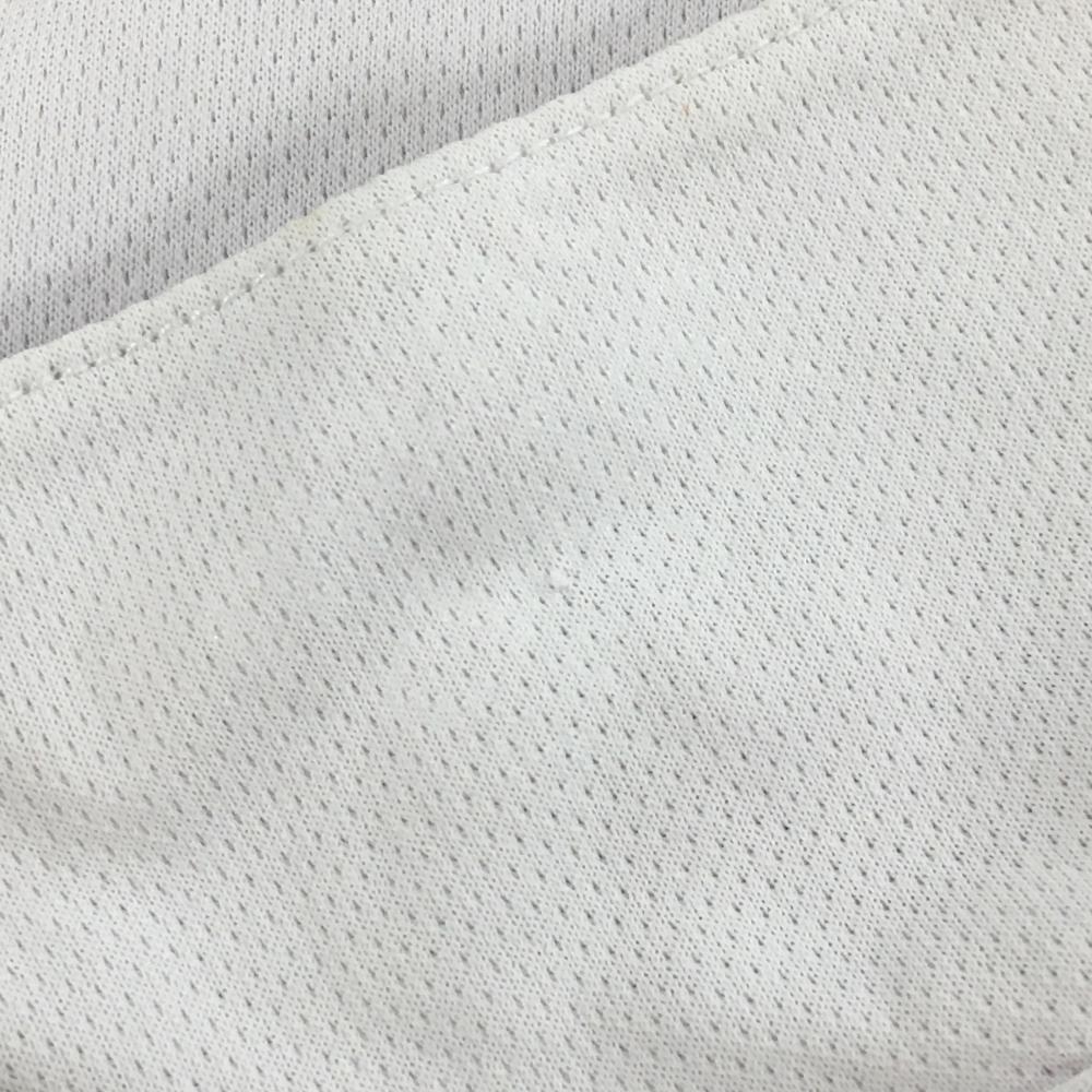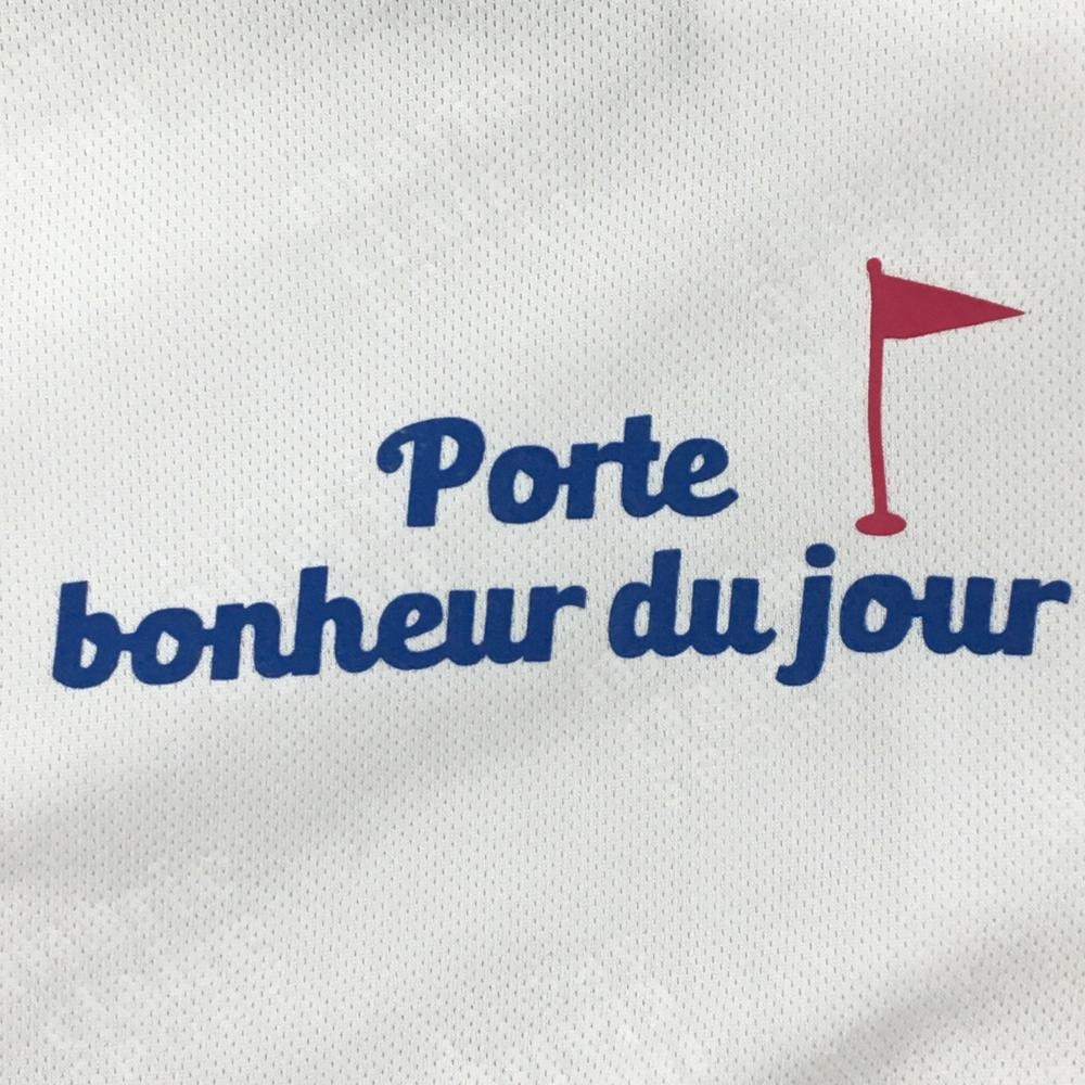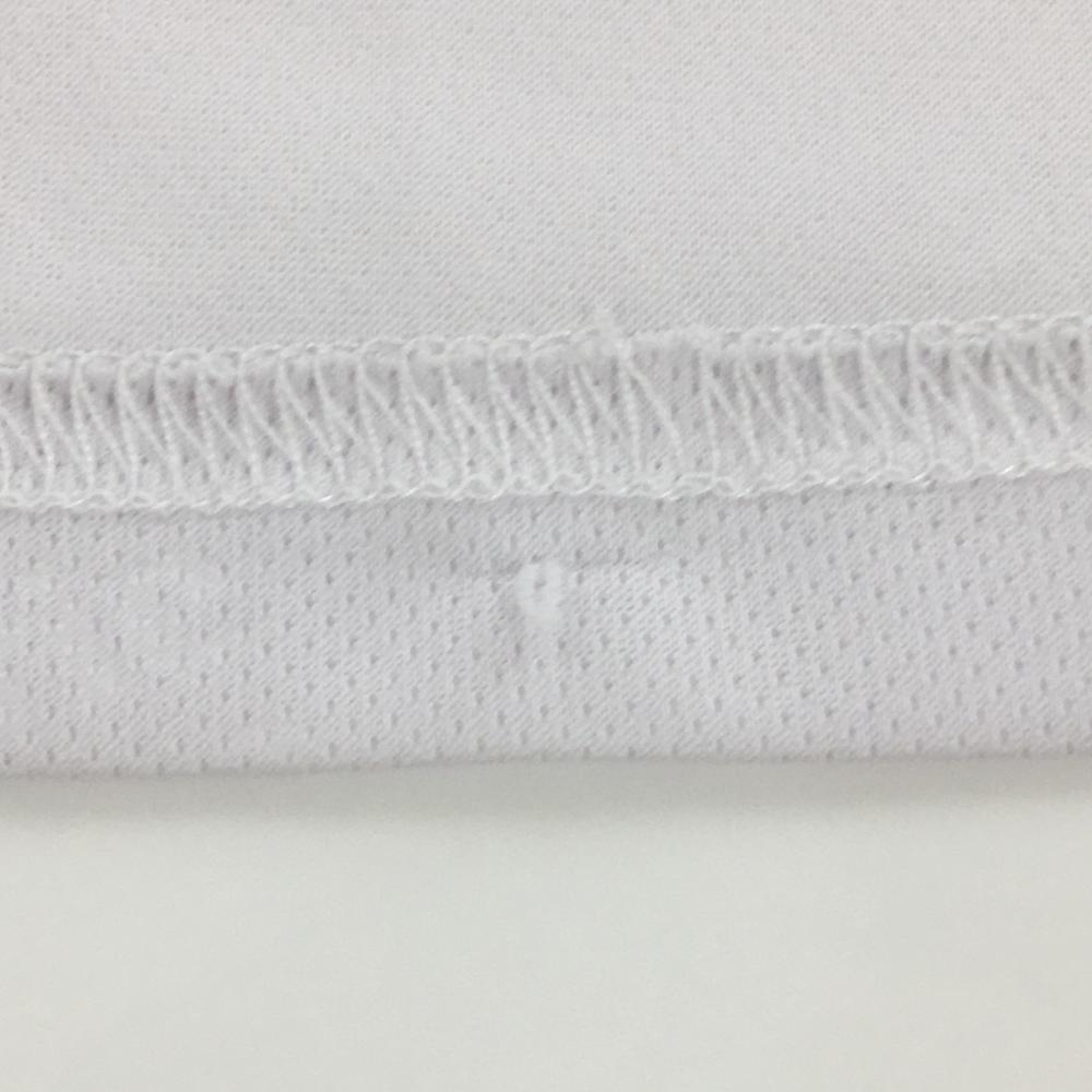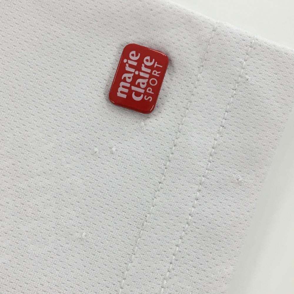 マリクレールスポール 半袖ハイネックシャツ 白×ブルー ロゴ地模様 ハーフジップ レディース M ゴルフウェア marie claire