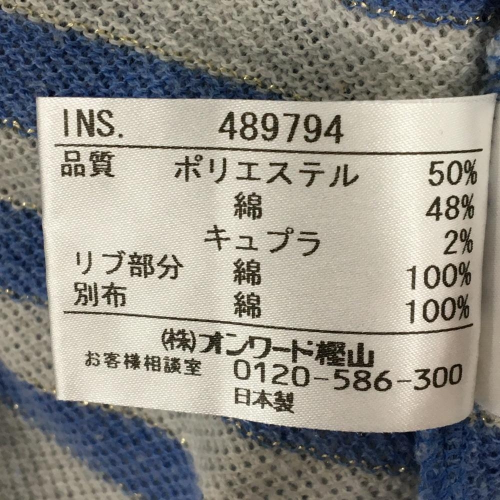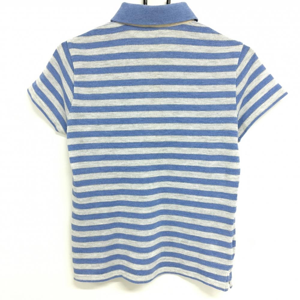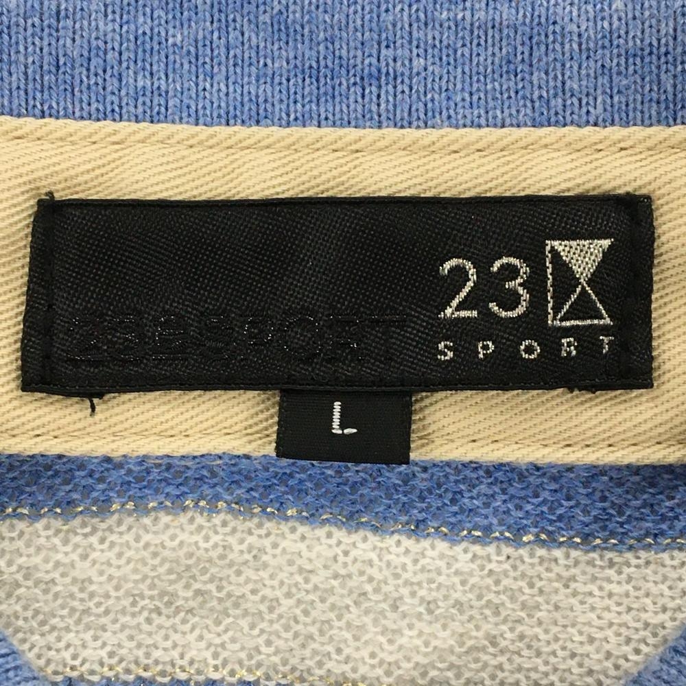 23区スポーツ 半袖ポロシャツ ライトブルー×グレー ボーダー レディース L ゴルフウェア 23区