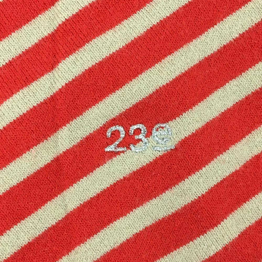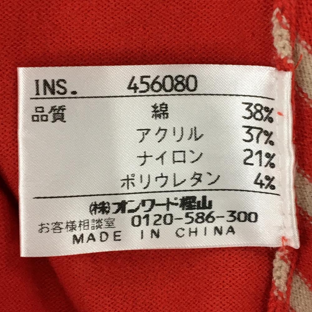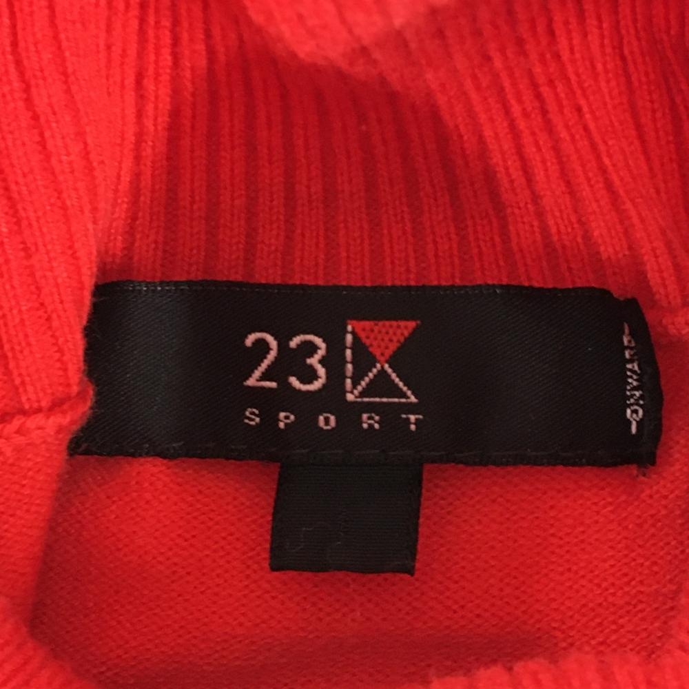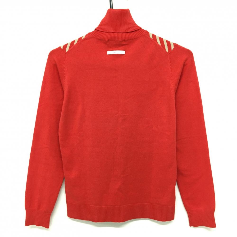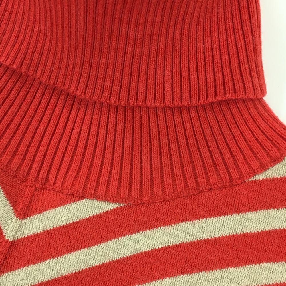 【美品】23区スポーツ タートルネックセーター レッド×ベージュ 前身頃斜めボーダー ニット レディース I(M) ゴルフウェア 23区