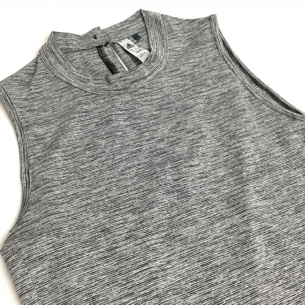 【超美品】アディダス ノースリーブシャツ 杢グレー系 ハイネック 裾ロゴ レディース M ゴルフウェア 2023年モデル adidas