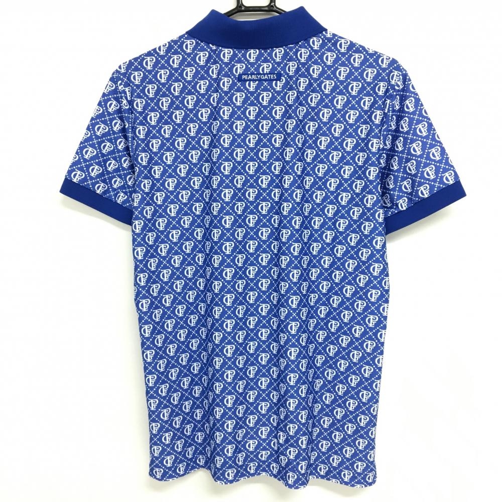 【超美品】パーリーゲイツ 半袖ポロシャツ ブルー系×白 ロゴ総柄 メンズ 4(M) ゴルフウェア 2024年モデル PEARLY GATES