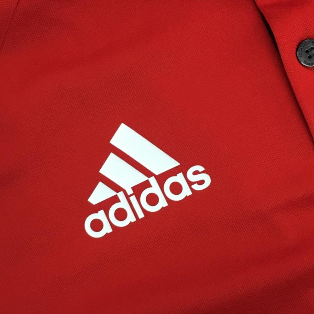 【超美品】アディダス 半袖ポロシャツ レッド×白 胸ロゴ climalite メンズ M ゴルフウェア adidas
