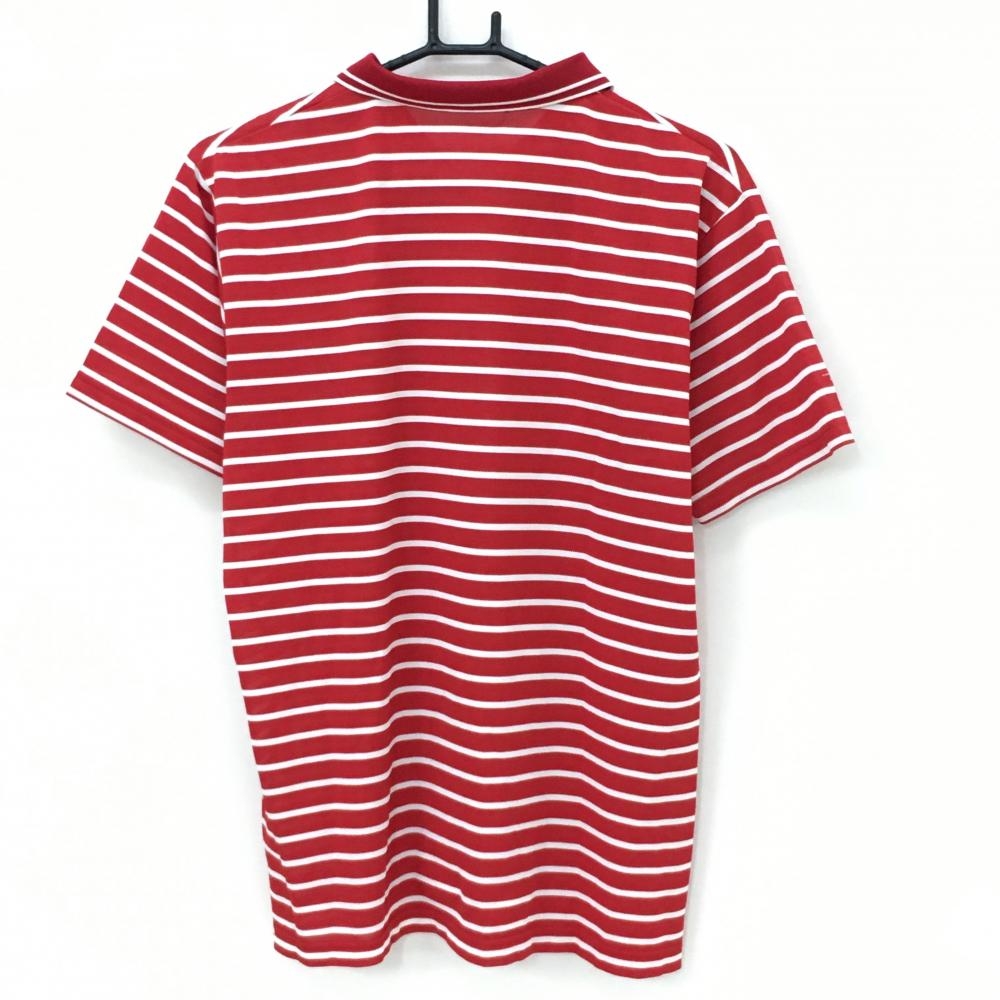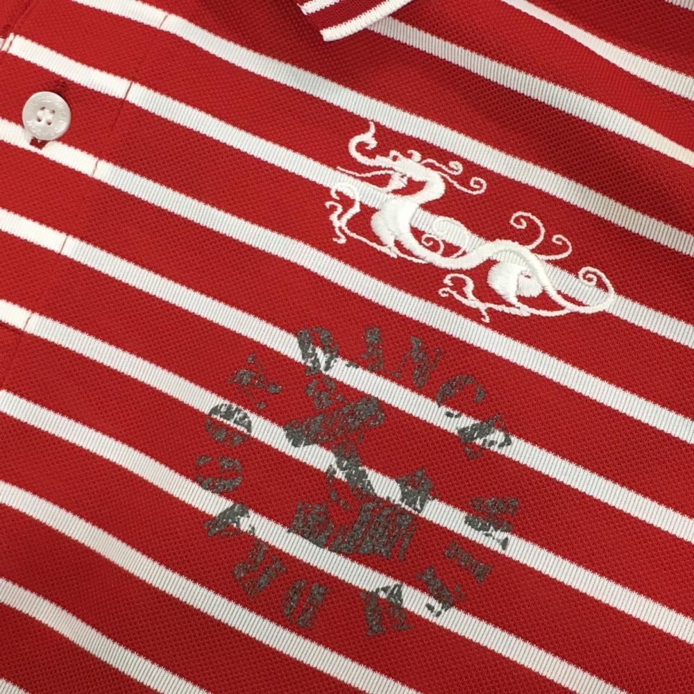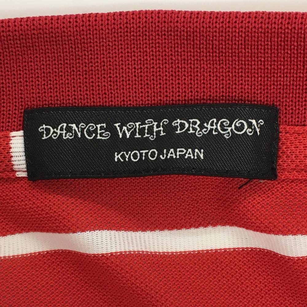 【美品】ダンスウィズドラゴン 半袖ポロシャツ レッド×白 ボーダー ロゴ刺しゅう メンズ 3(L) ゴルフウェア Dance With Dragon
