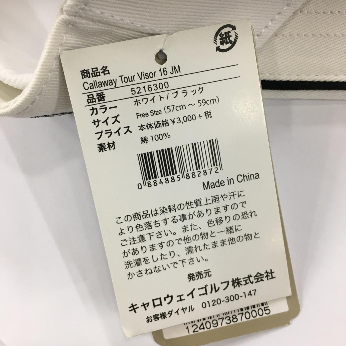 キャロウェイ サンバイザー 白×黒 立体ロゴ刺しゅう 紙タグ付 フリー(57-59cm) ゴルフウェア Callaway
