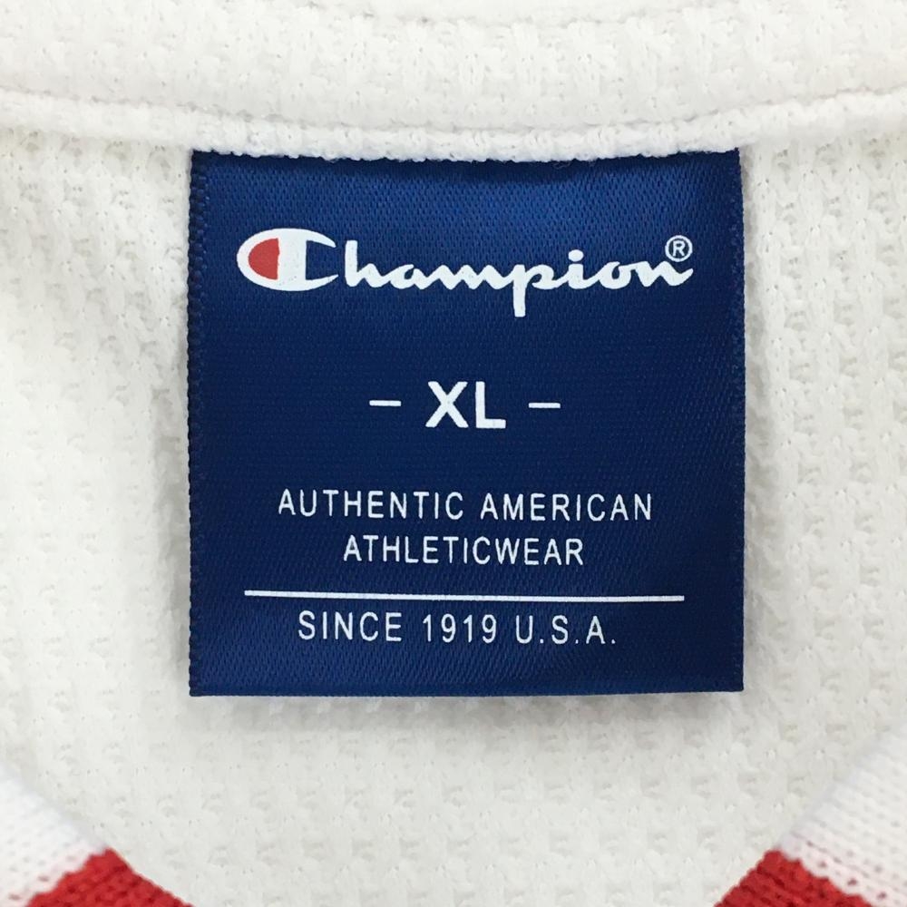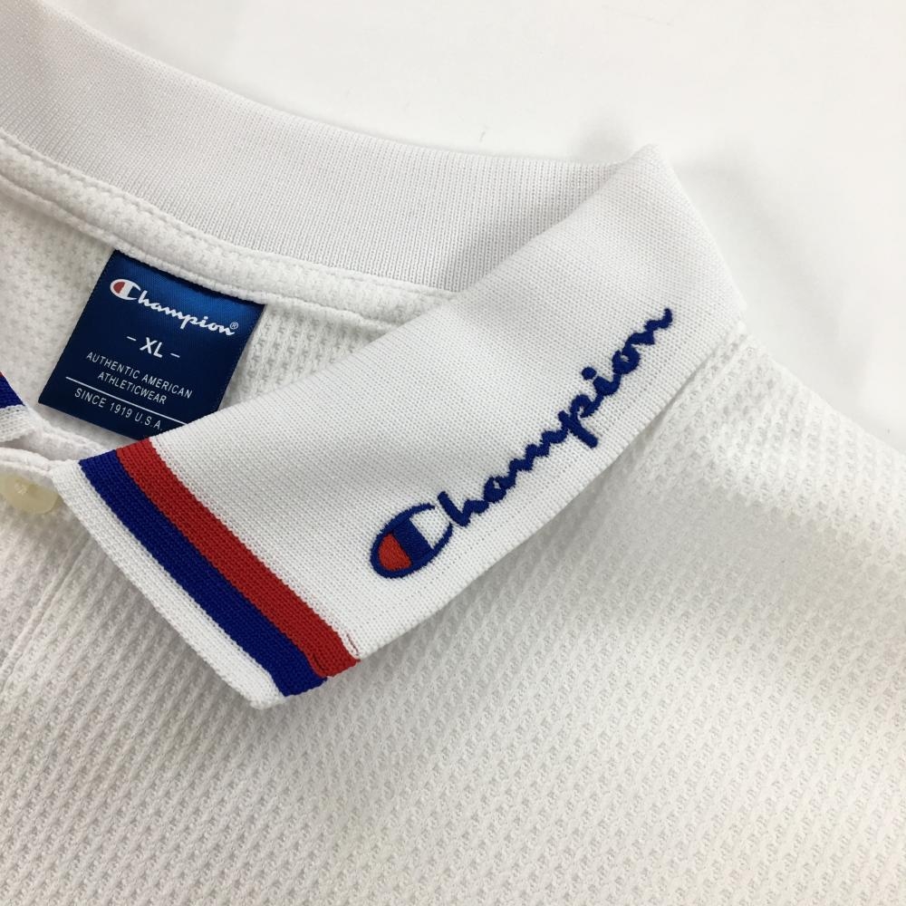 【超美品】チャンピオン 半袖ポロシャツ 白 ワッフル調生地 襟ロゴ刺しゅう メンズ XL ゴルフウェア Champion