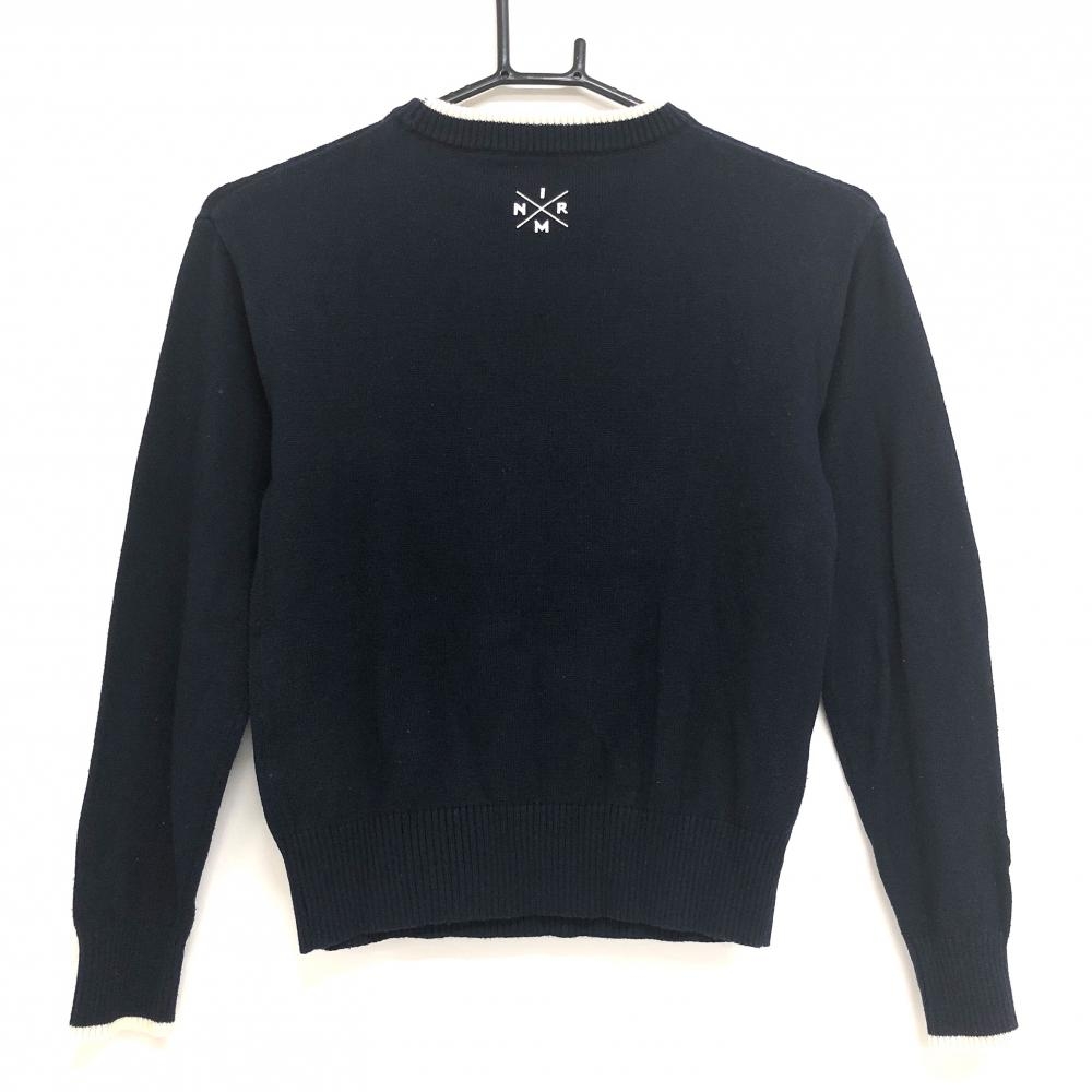 【美品】アイリッシュマン セーター ネイビー×白 フロントロゴ コットン混 レディース S ゴルフウェア IRISHMAN