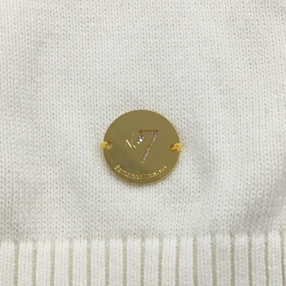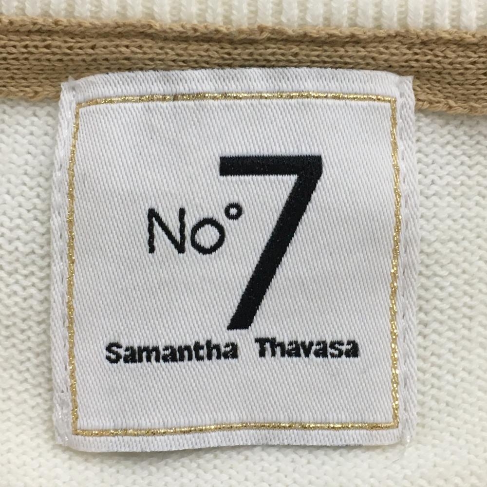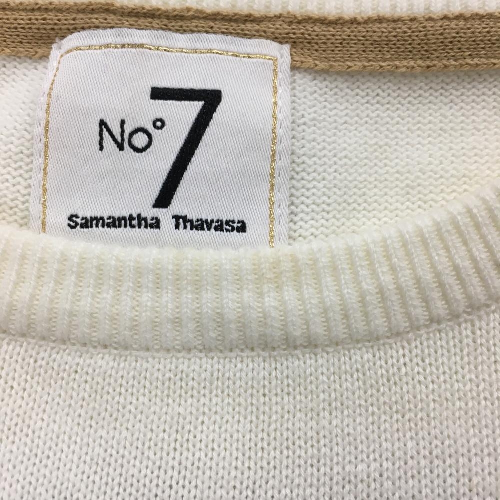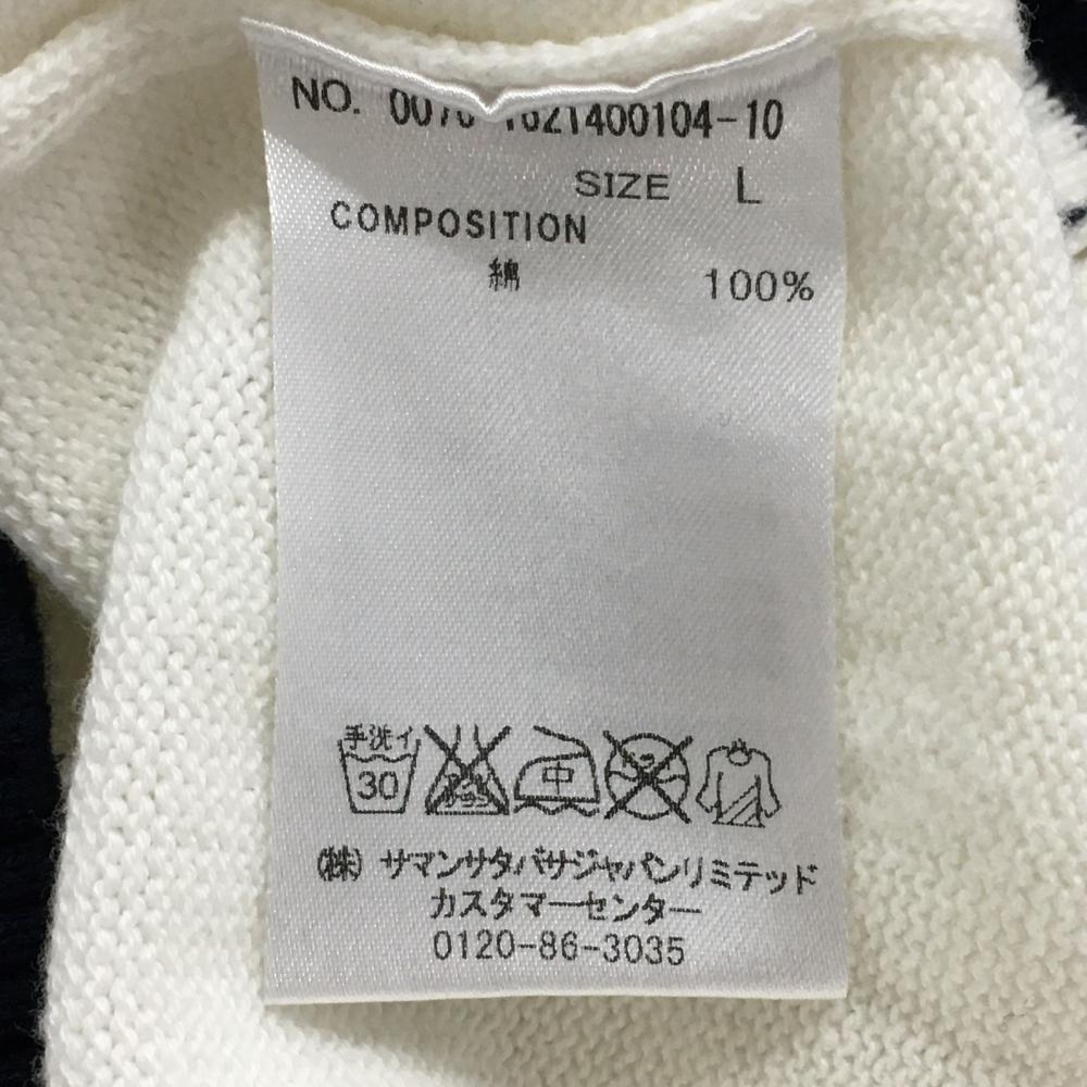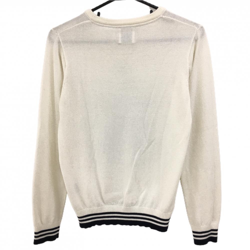サマンサタバサNo.7 セーター 白×ネイビー フロッキープリント ニット 裾・袖口ライン レディース L ゴルフウェア Samantha Thavasa