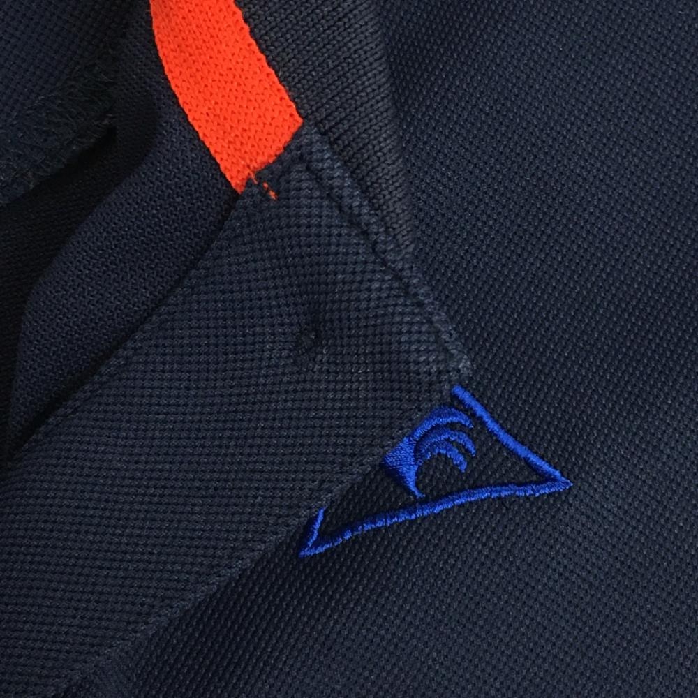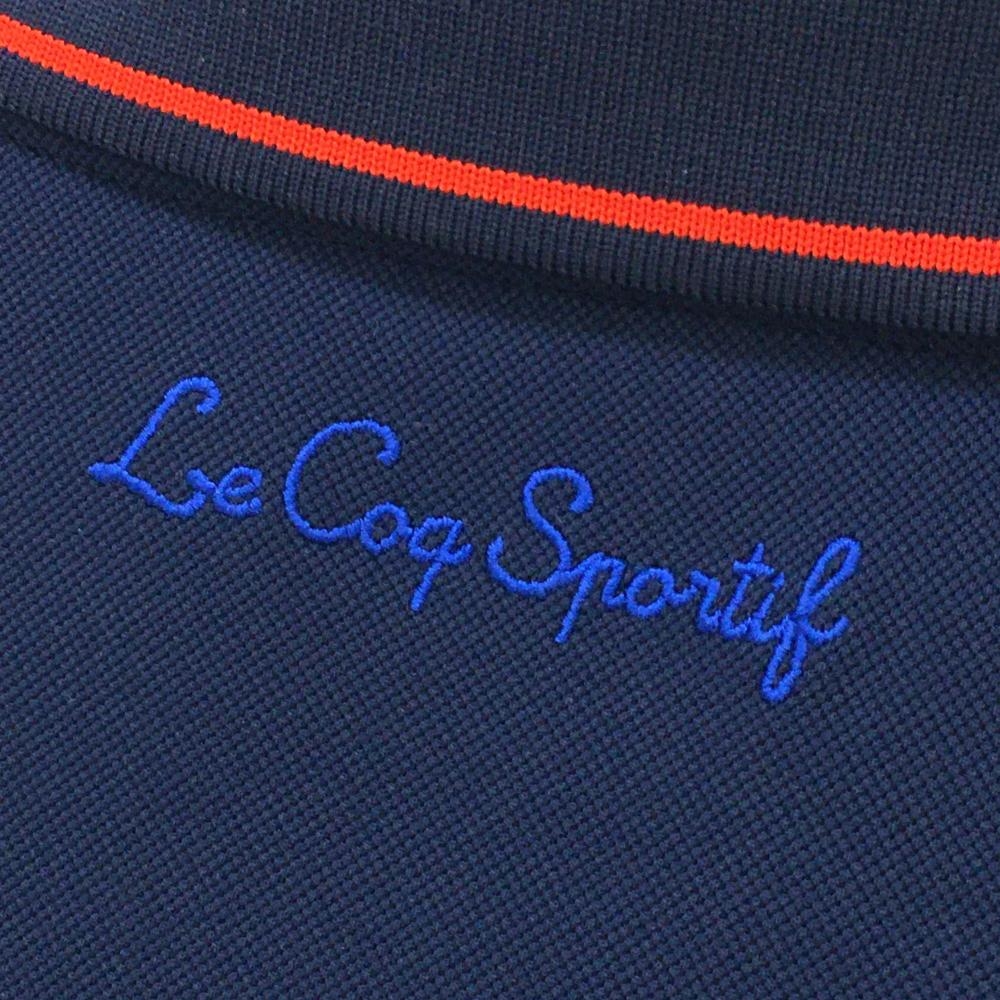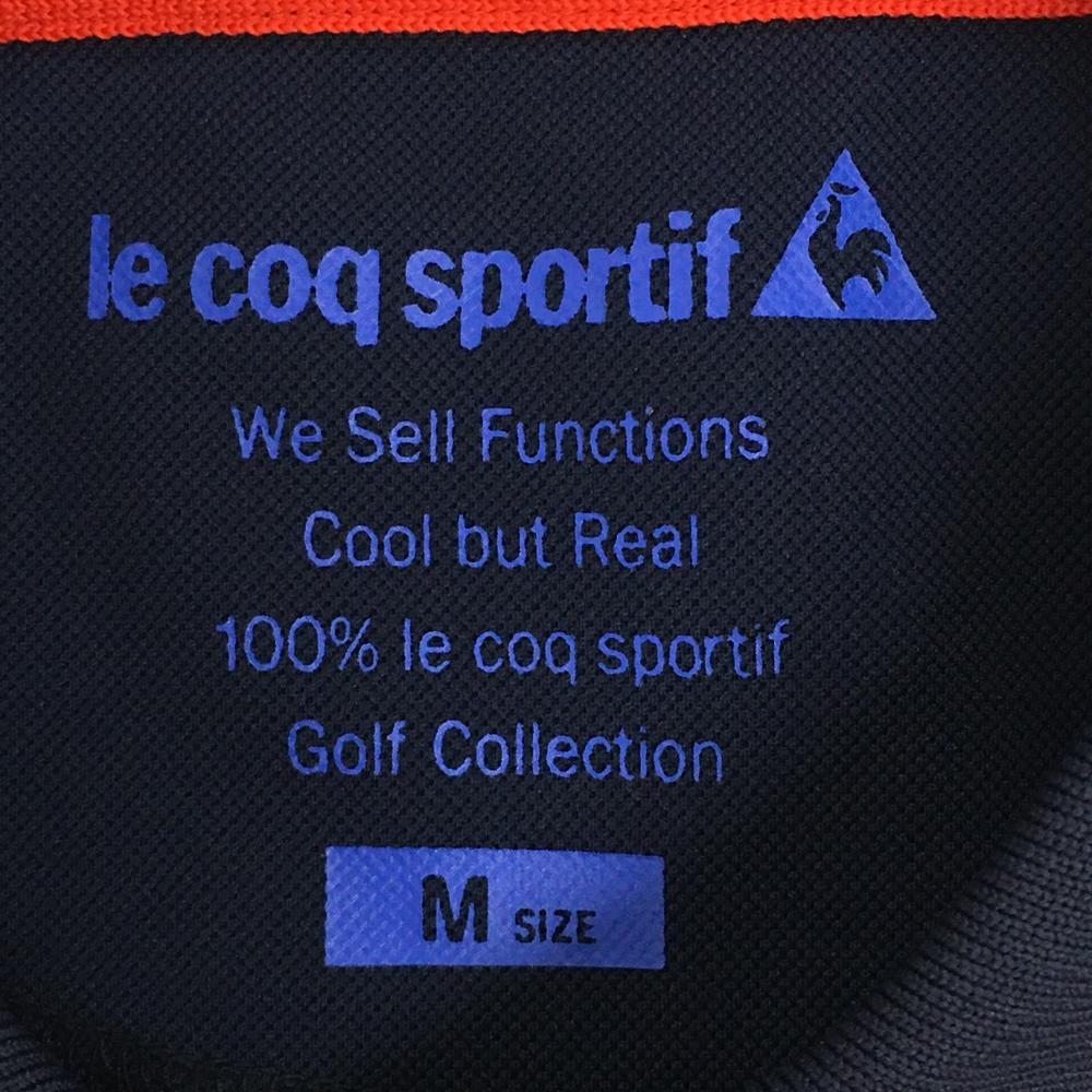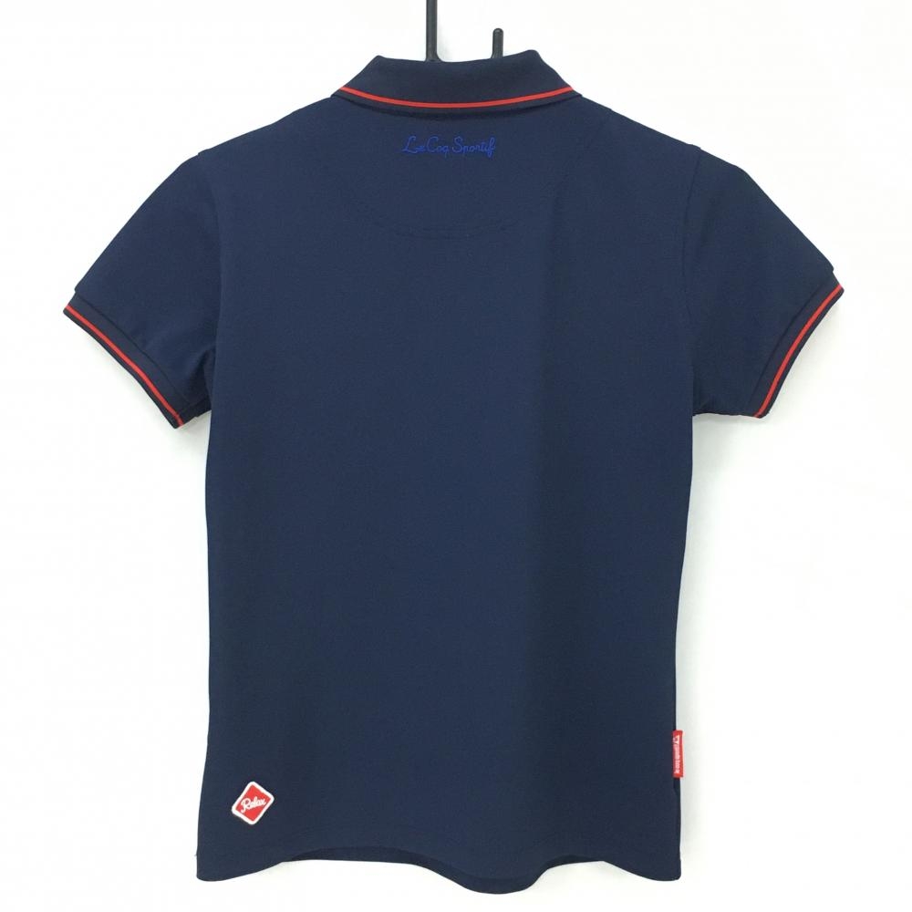 【美品】ルコック 半袖ポロシャツ ネイビー×オレンジ フロントプリント 袖口・襟ライン レディース M ゴルフウェア le coq sportif