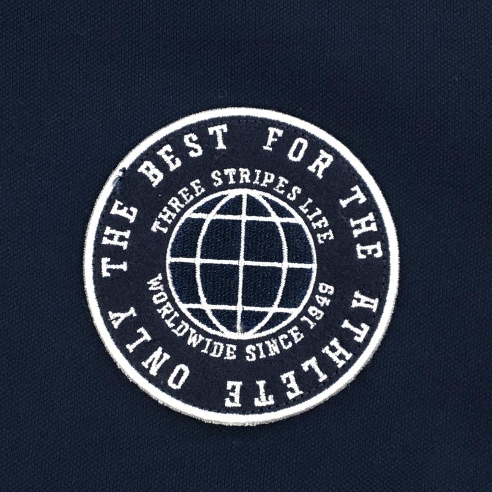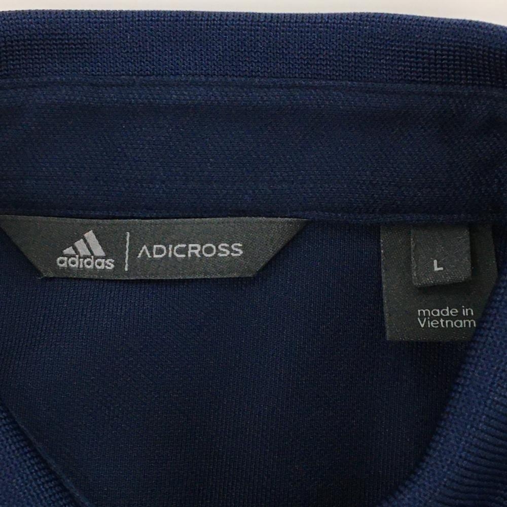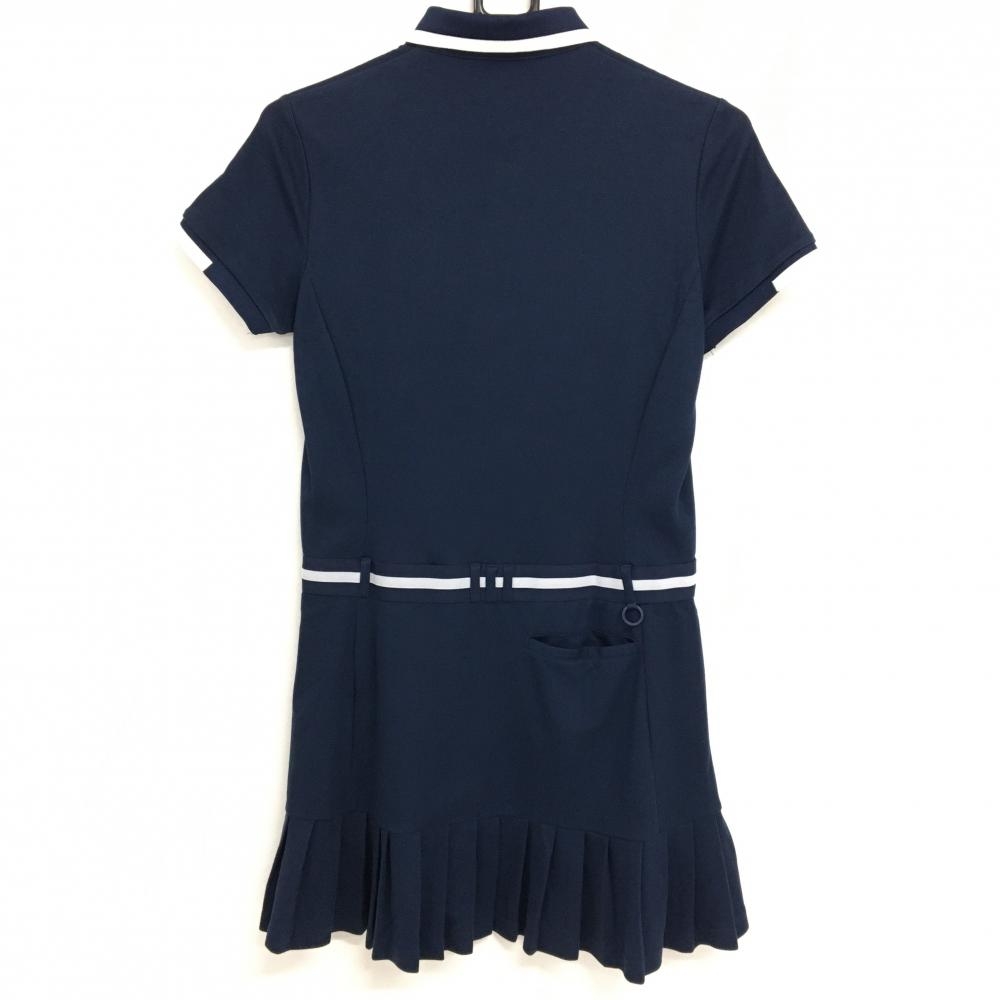 アディダス 半袖ポロワンピース ネイビー×白 後裾プリーツ 共布ベルト付 UPF50 レディース L ゴルフウェア adidas