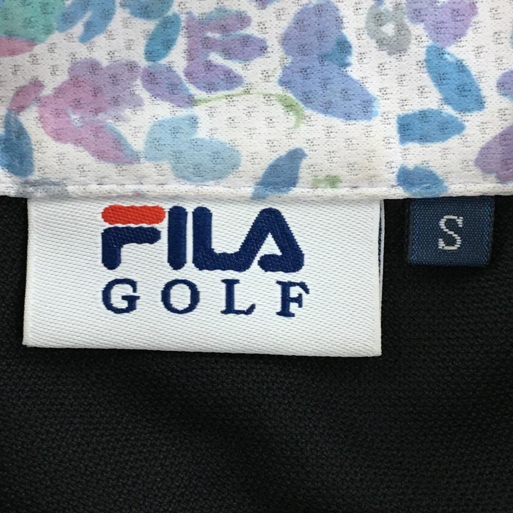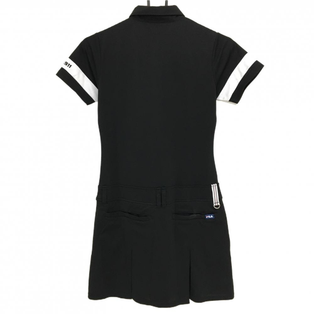 フィラゴルフ 半袖ポロワンピース 黒 袖ライン スカート部裏地付 レディース S ゴルフウェア FILA GOLF