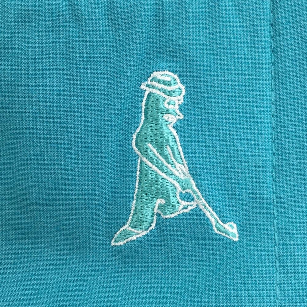 【美品】ピン スカート ブルーグリーン ロゴ白 レディース S ゴルフウェア PING