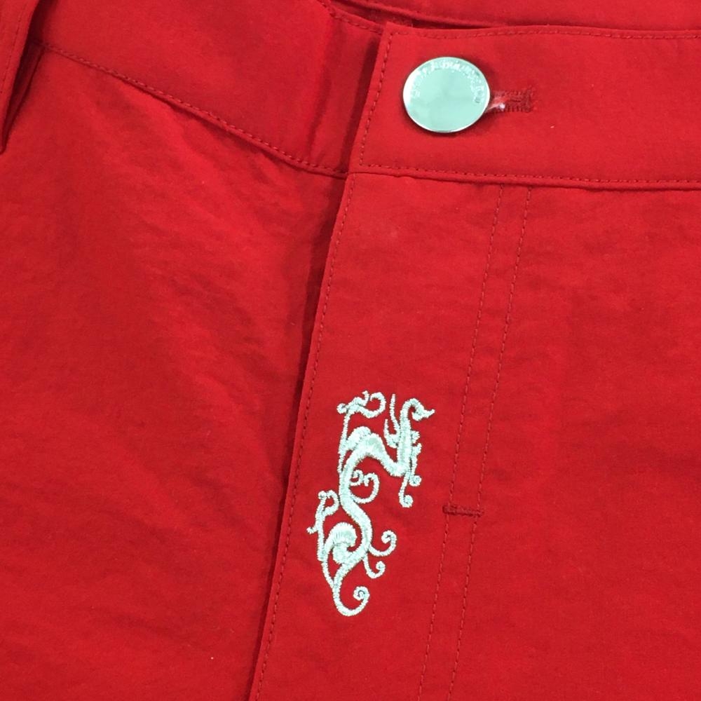 【美品】ダンスウィズドラゴン 2WAYパンツ レッド ハーフパンツ 裾着脱可 メンズ 3(L) ゴルフウェア Dance With Dragon