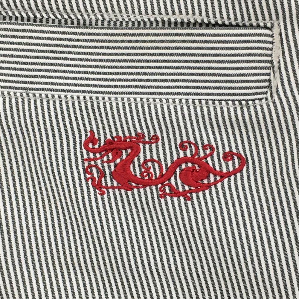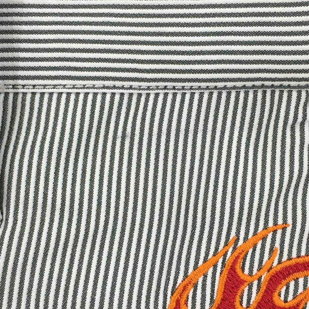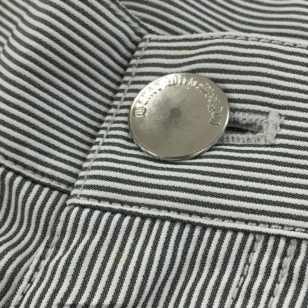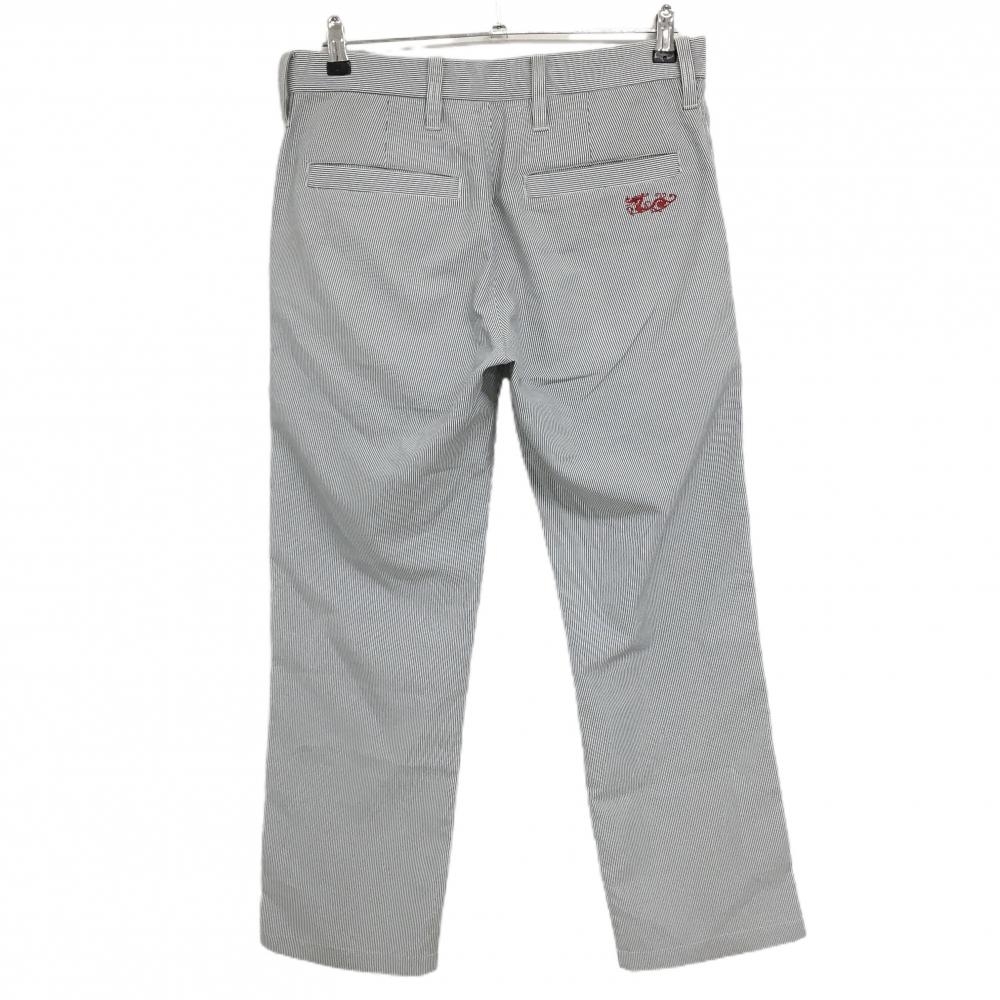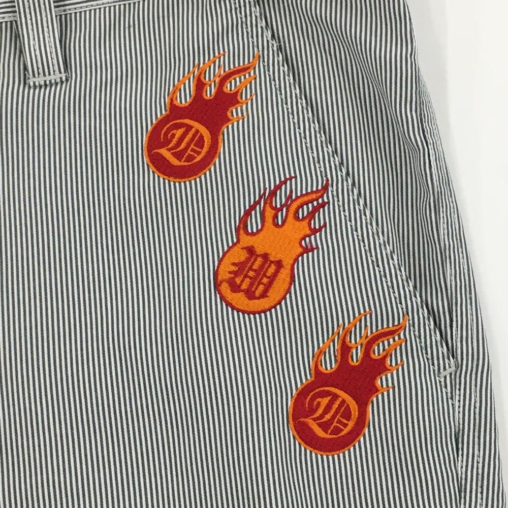【美品】ダンスウィズドラゴン パンツ 黒×白 細ストライプ 炎刺しゅう メンズ 2(M) ゴルフウェア Dance With Dragon