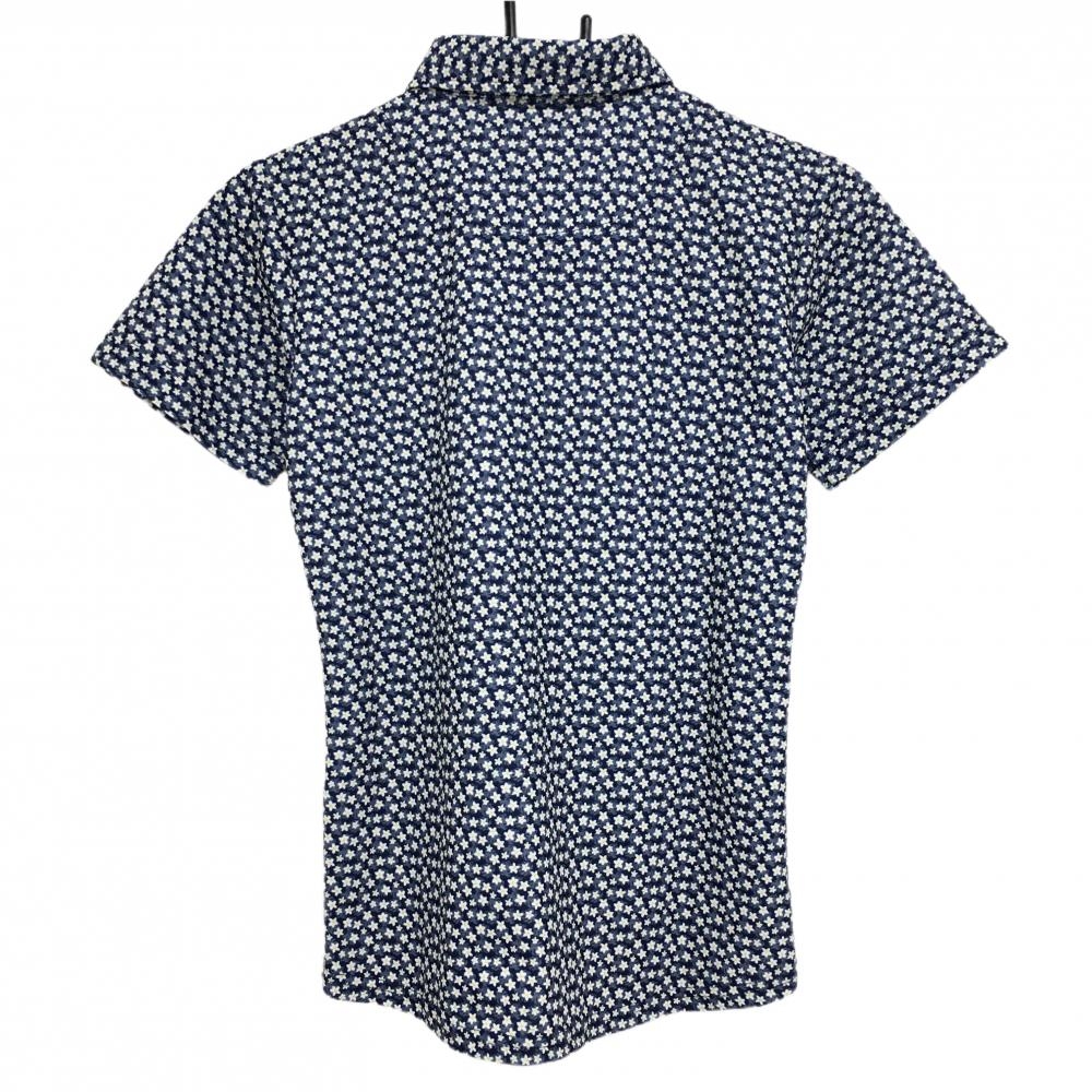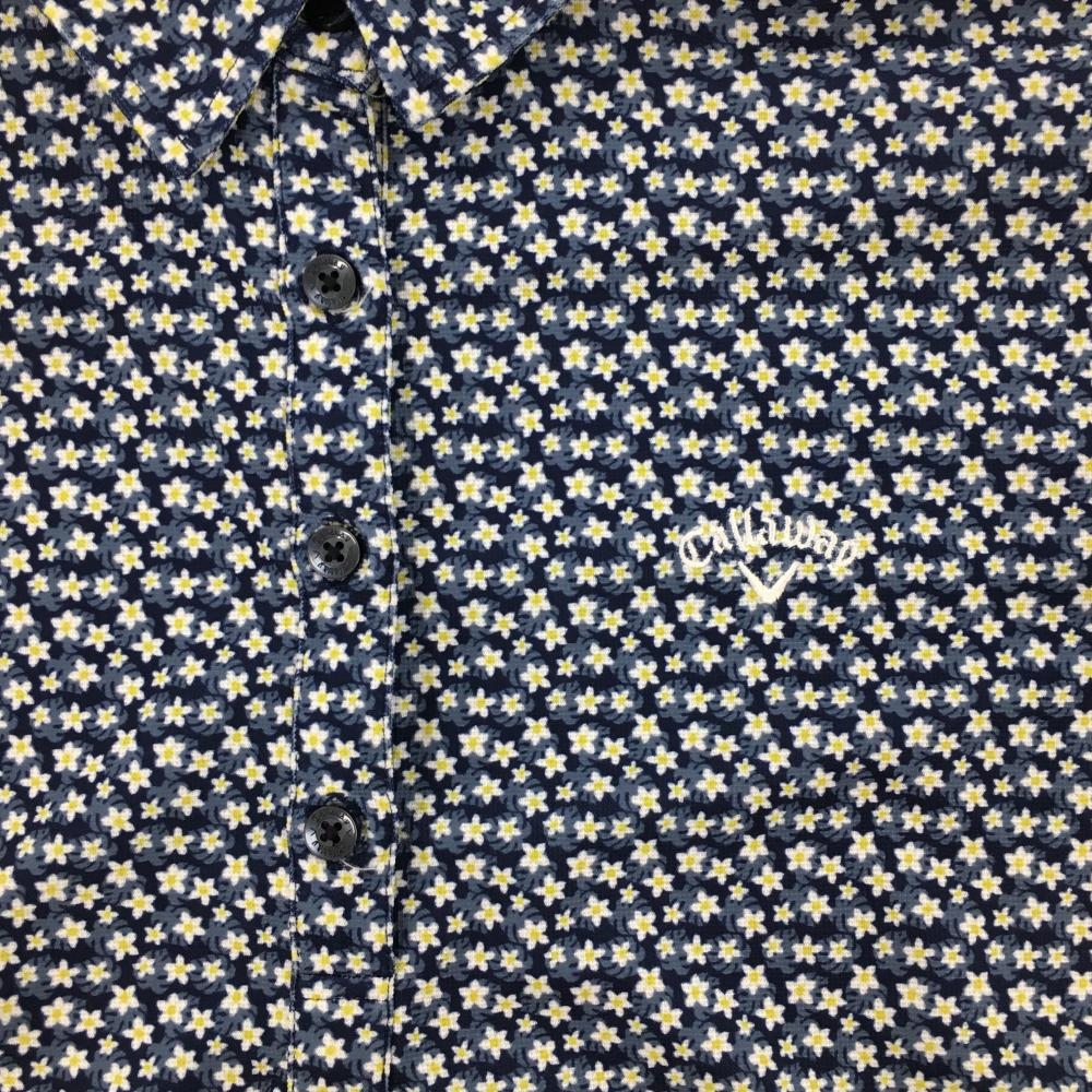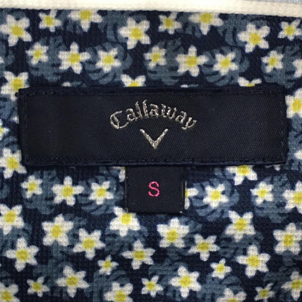 【超美品】キャロウェイ 半袖ポロシャツ ネイビー×白 花柄 ロゴ刺しゅう レディース S ゴルフウェア Callaway