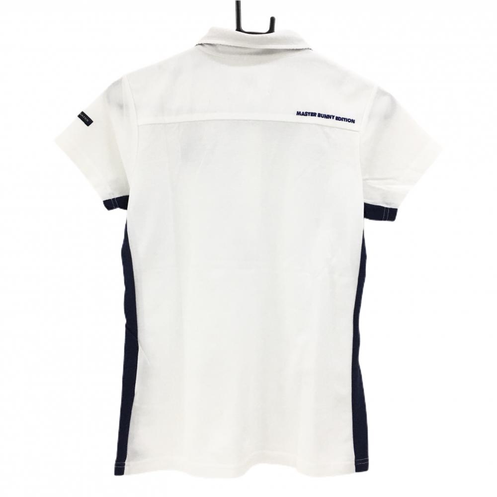 マスターバニー 半袖ポロシャツ 白×ネイビー サイド切替 前立て一部斜めボーダー レディース 0(S) ゴルフウェア MASTER BUNNY EDITION