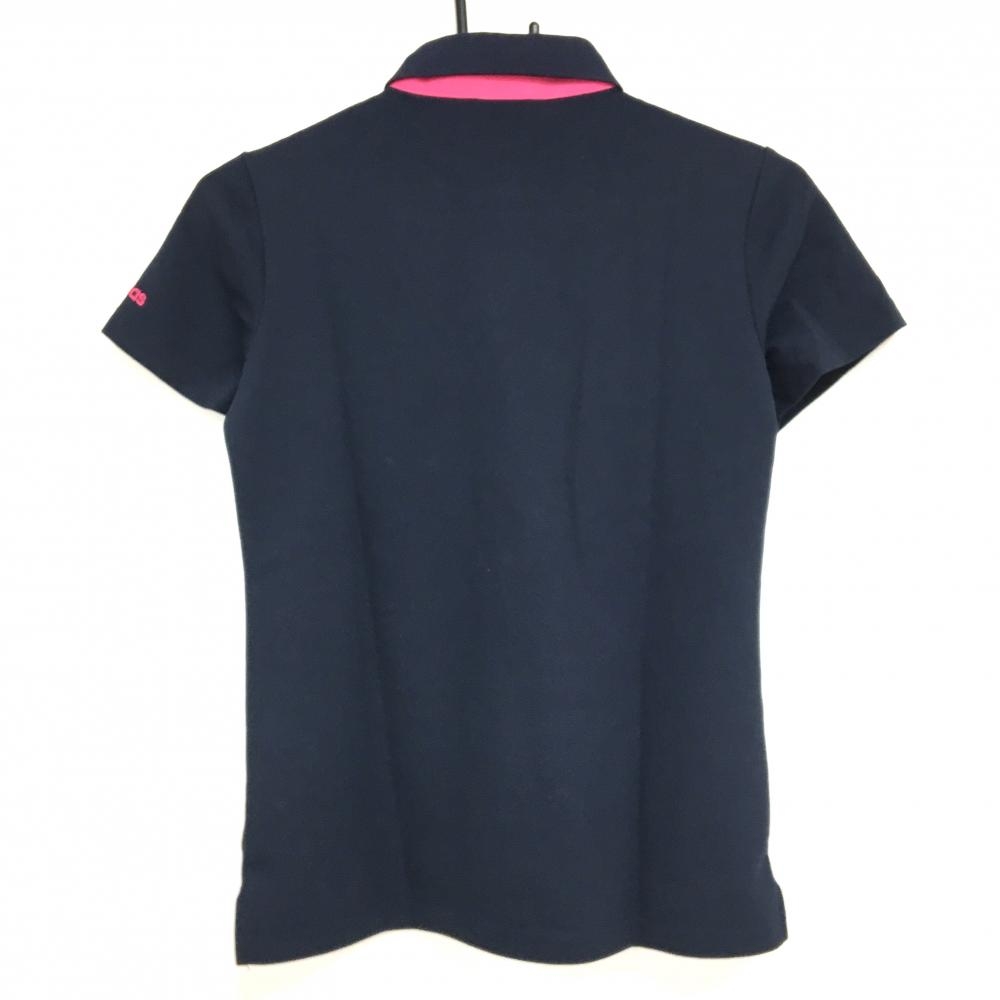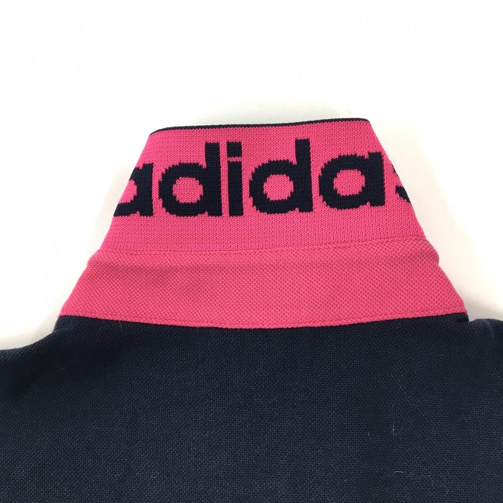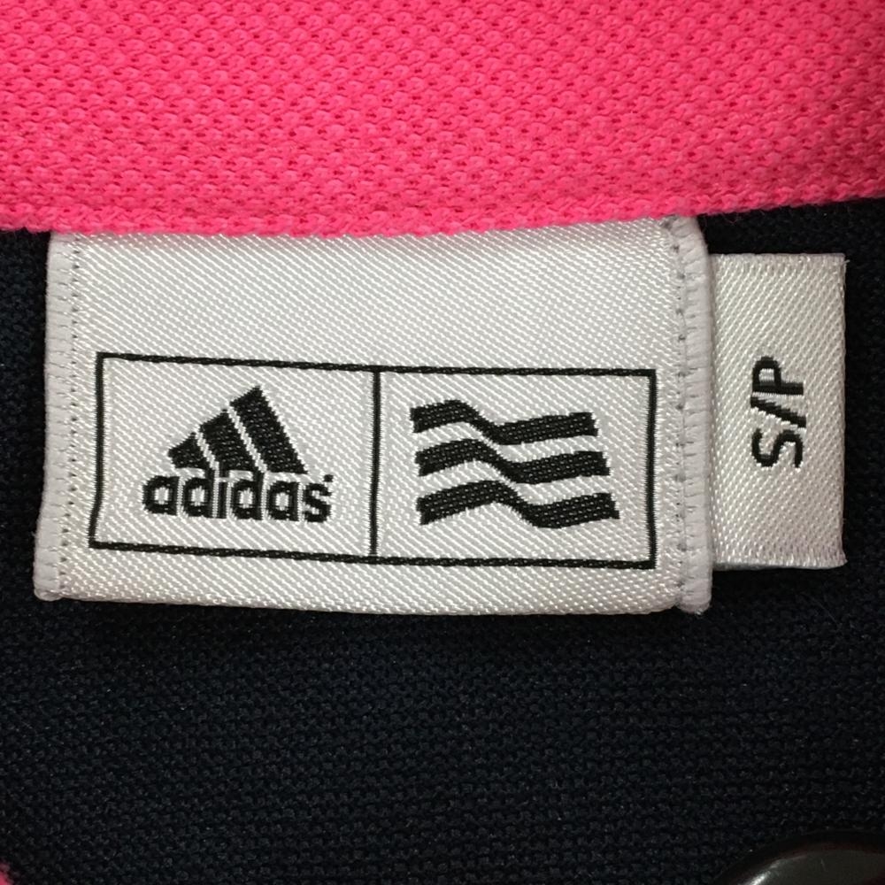 【超美品】アディダス 半袖ポロシャツ ネイビー×ピンク 襟裏ロゴ レディース S/P ゴルフウェア adidas