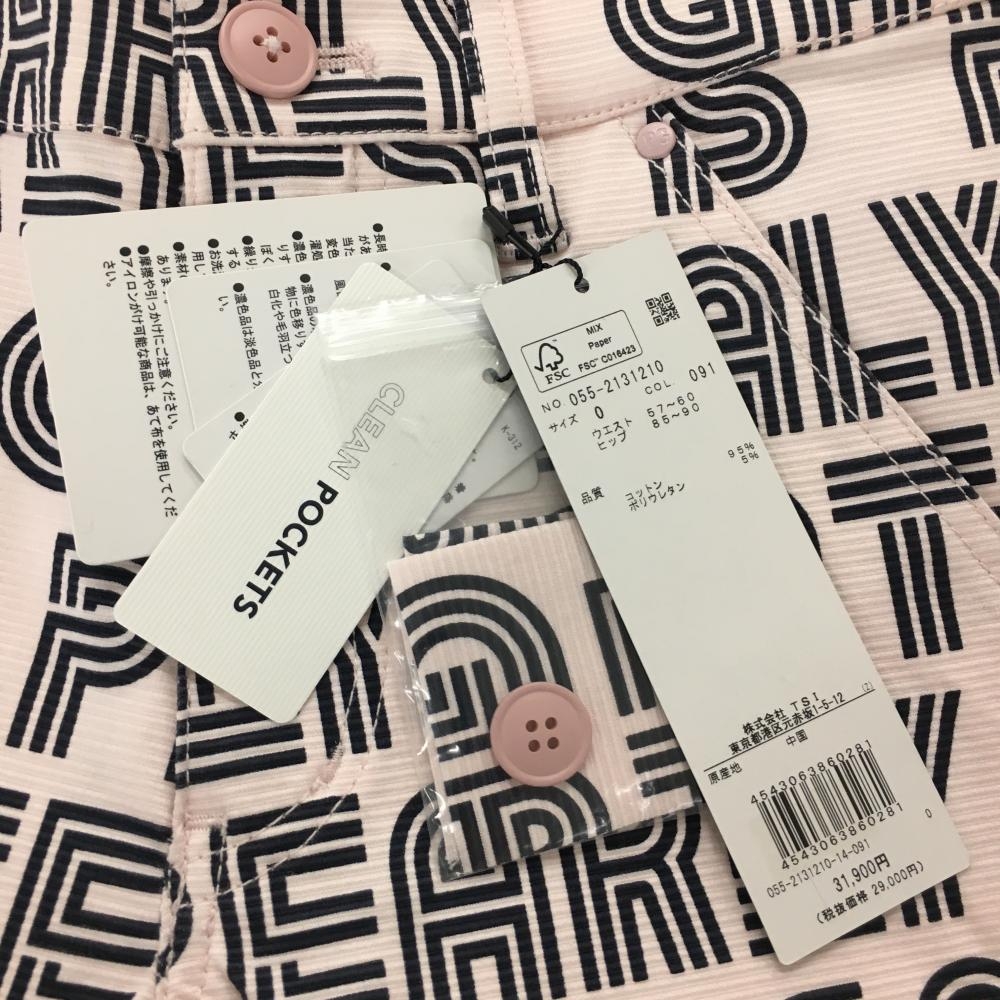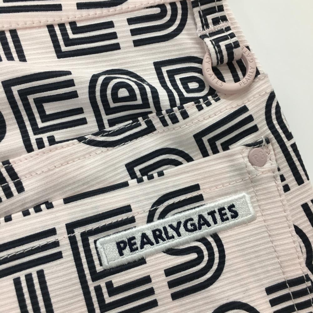 【新品】パーリーゲイツ パンツ ピンク×黒 ロゴ総柄 ストレッチ レディース 0(S) ゴルフウェア PEARLY GATES