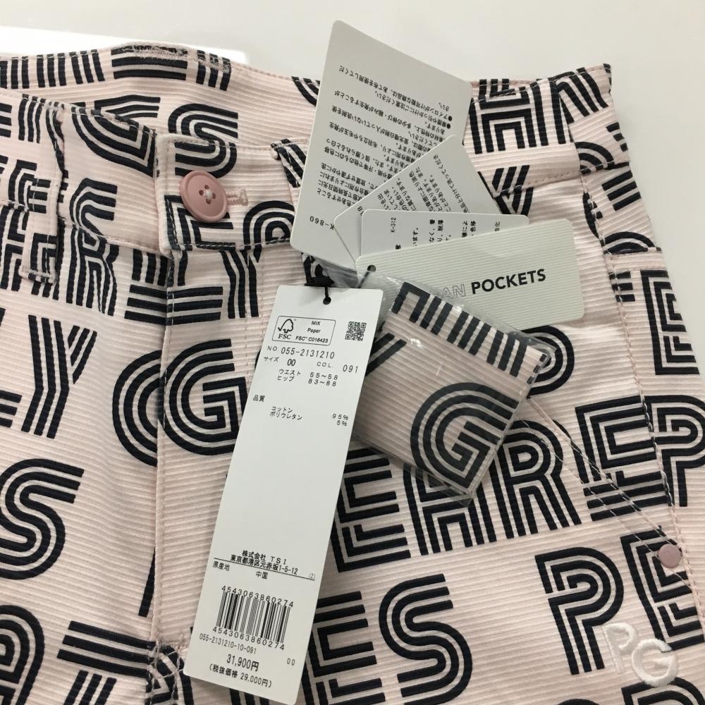 【新品】パーリーゲイツ パンツ ピンク×黒 ロゴ総柄 ストレッチ レディース 00(XS) ゴルフウェア PEARLY GATES