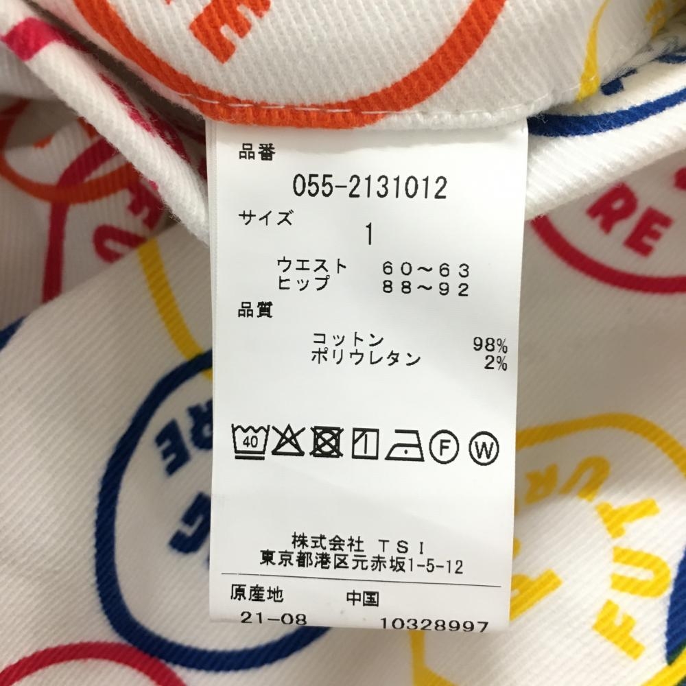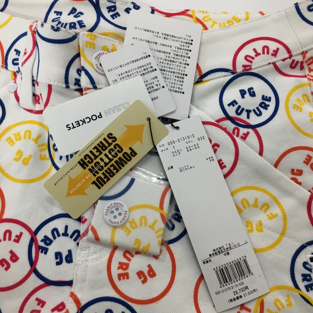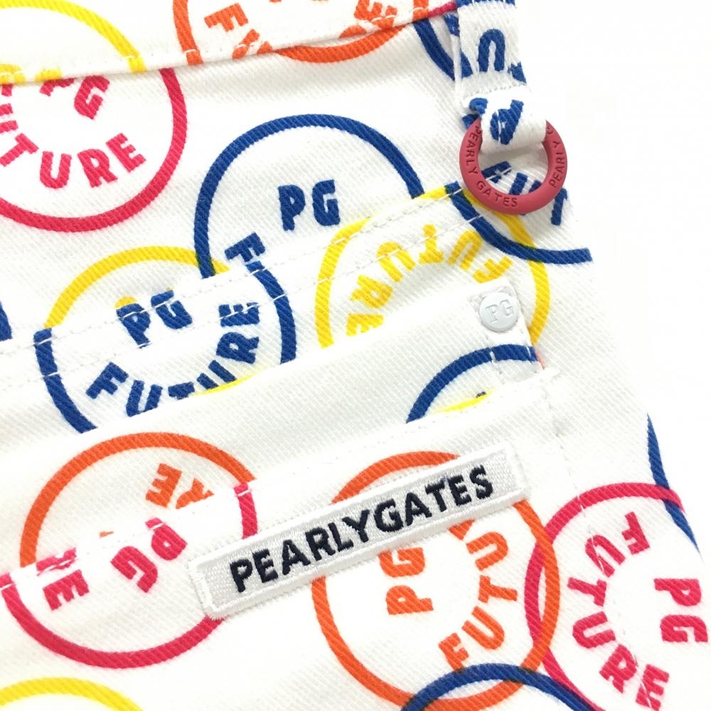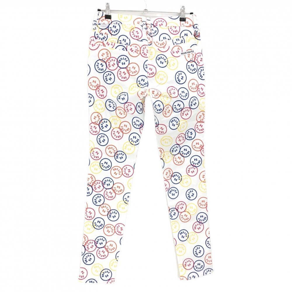 【新品】パーリーゲイツ パンツ 白×マルチカラー PG FUTURE ニコちゃん スマイル ストレッチ レディース 1(M) ゴルフウェア PEARLY GATES