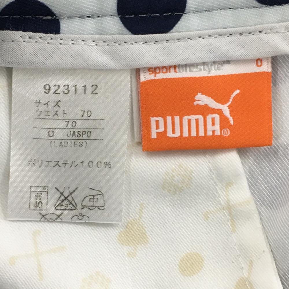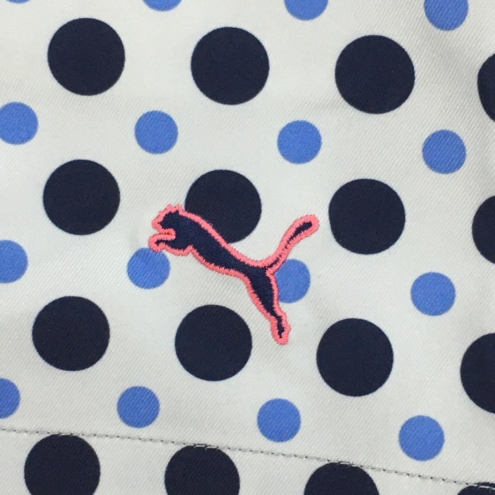 【超美品】プーマ ショートパンツ ライトグレー×ネイビー ドット ストレッチ ロゴ刺しゅう レディース O ゴルフウェア PUMA