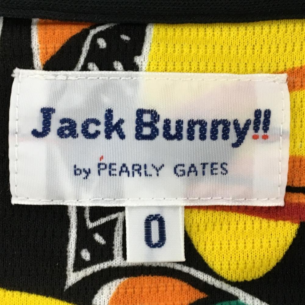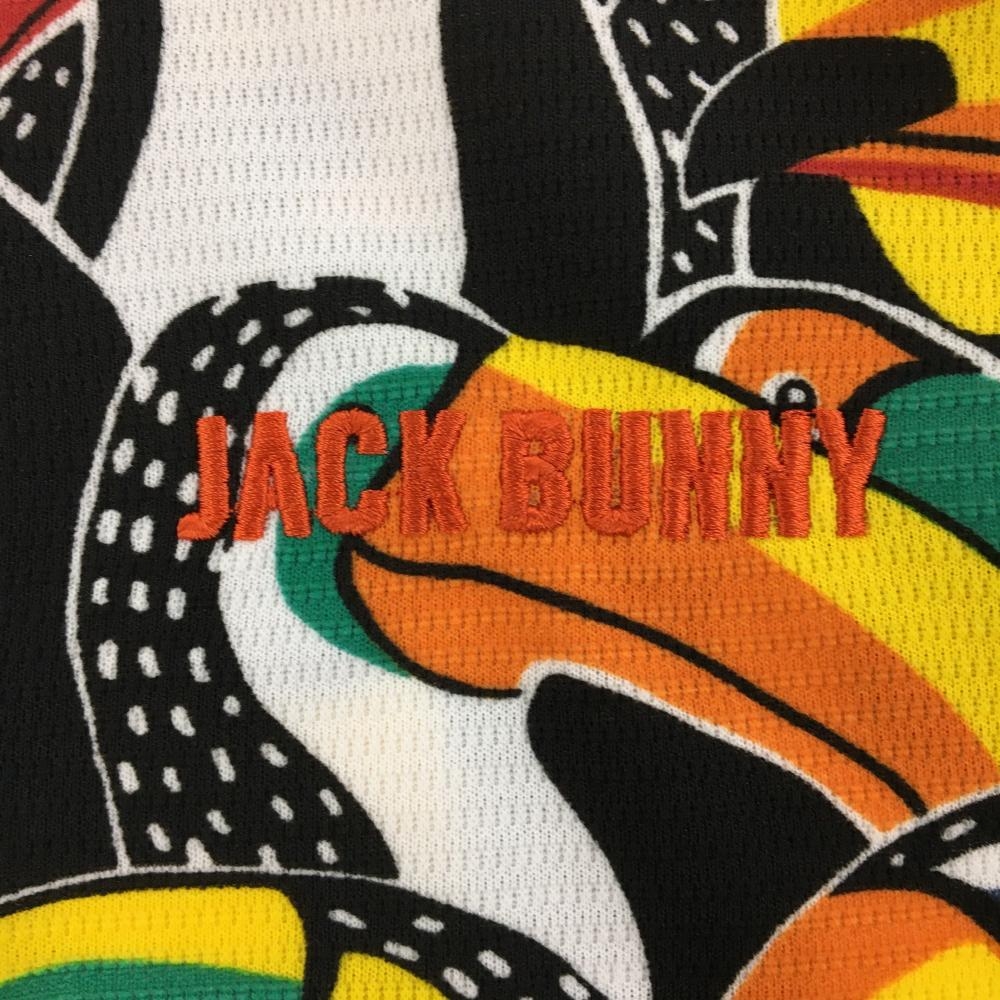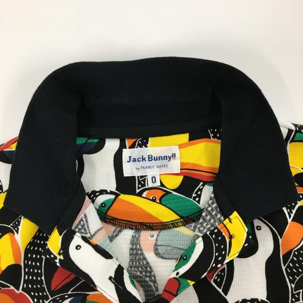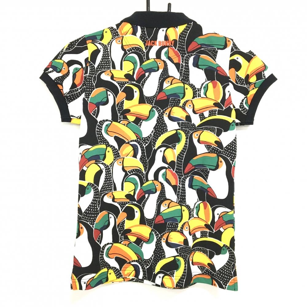 ジャックバニー 半袖ポロシャツ 黒×マルチカラー インコ柄 ロゴ刺しゅう レディース 0(S) ゴルフウェア Jack Bunny