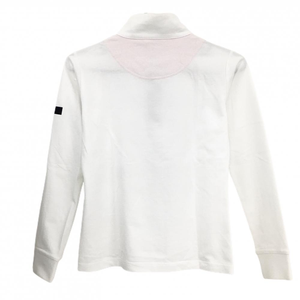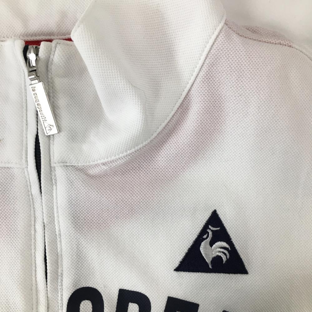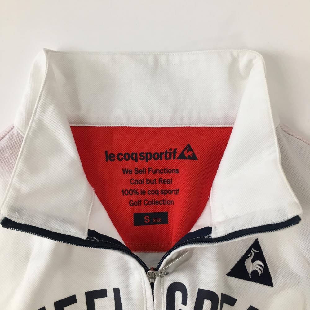 ルコックゴルフ 長袖ハイネックシャツ 白×ネイビー フロントプリント ハーフジップ レディース S ゴルフウェア le coq sportif