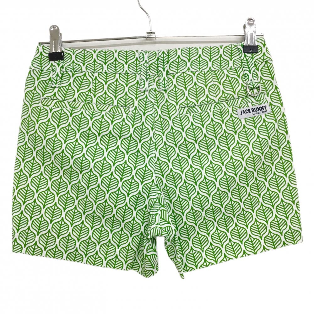 【超美品】ジャックバニー ショートパンツ 白×グリーン リーフ柄 レディース 0(S) ゴルフウェア Jack Bunny