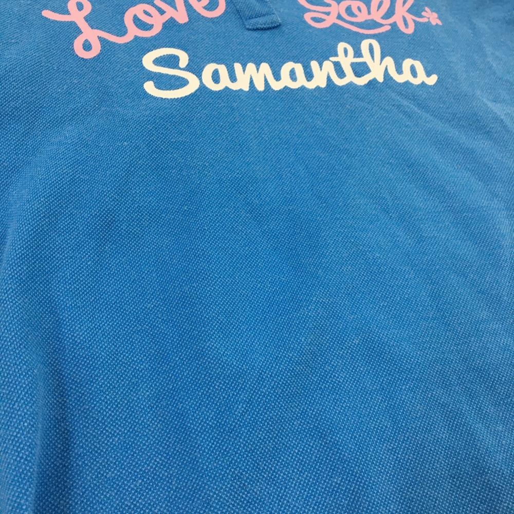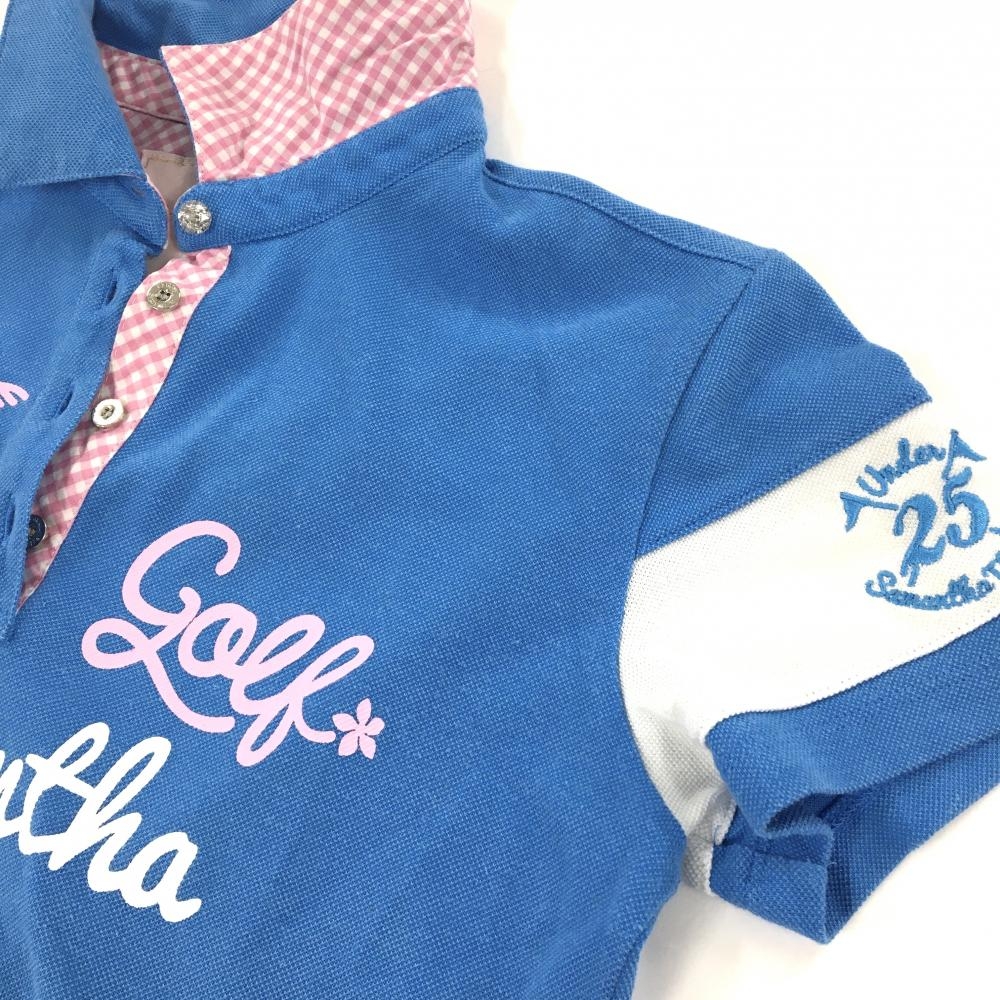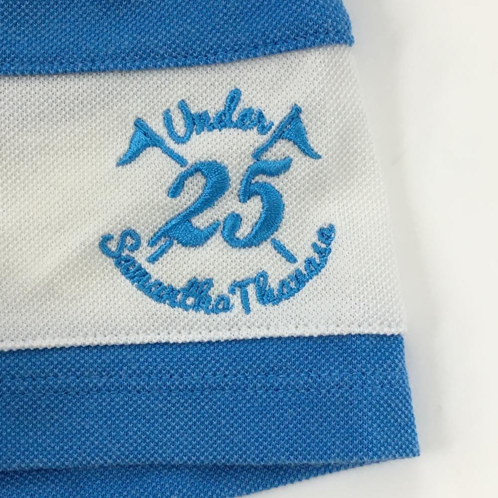 サマンサタバサUNDER25 半袖ポロシャツ ライトブルー×白 袖刺しゅう レディース M ゴルフウェア Samantha Thavasa