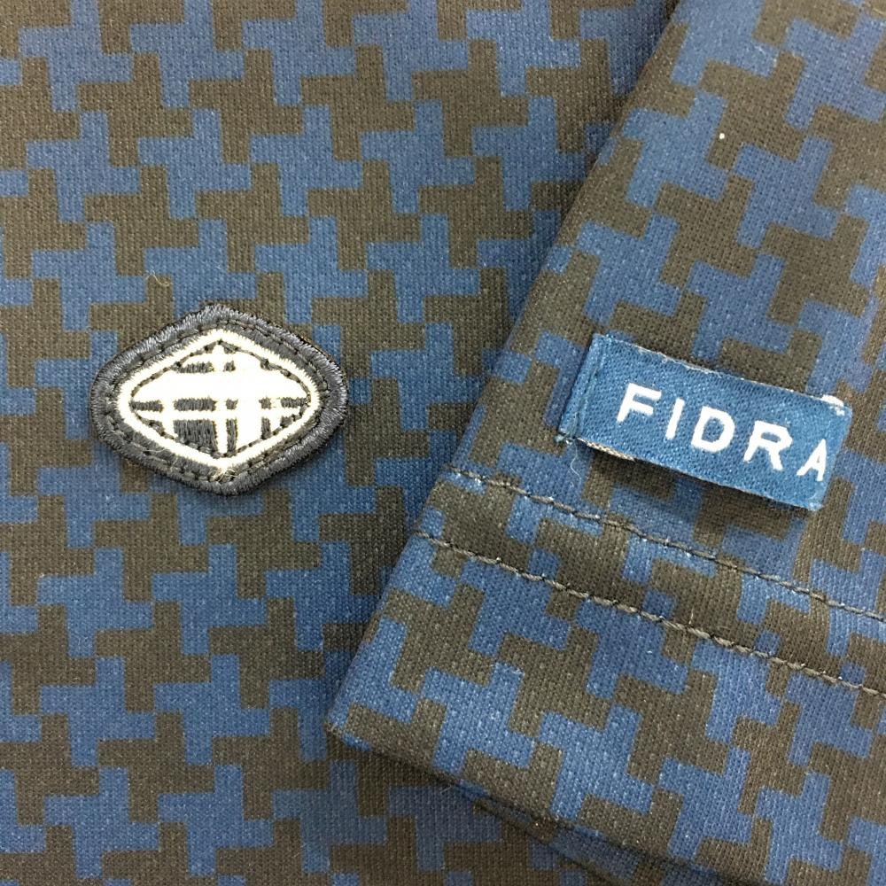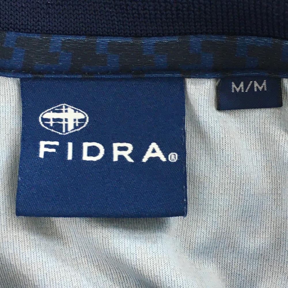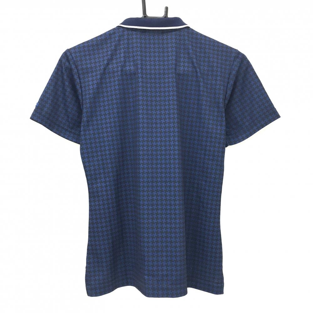 【美品】フィドラ 半袖ポロシャツ ネイビー×ダークネイビー 総柄 胸元ワッペン レディース M ゴルフウェア FIDRA