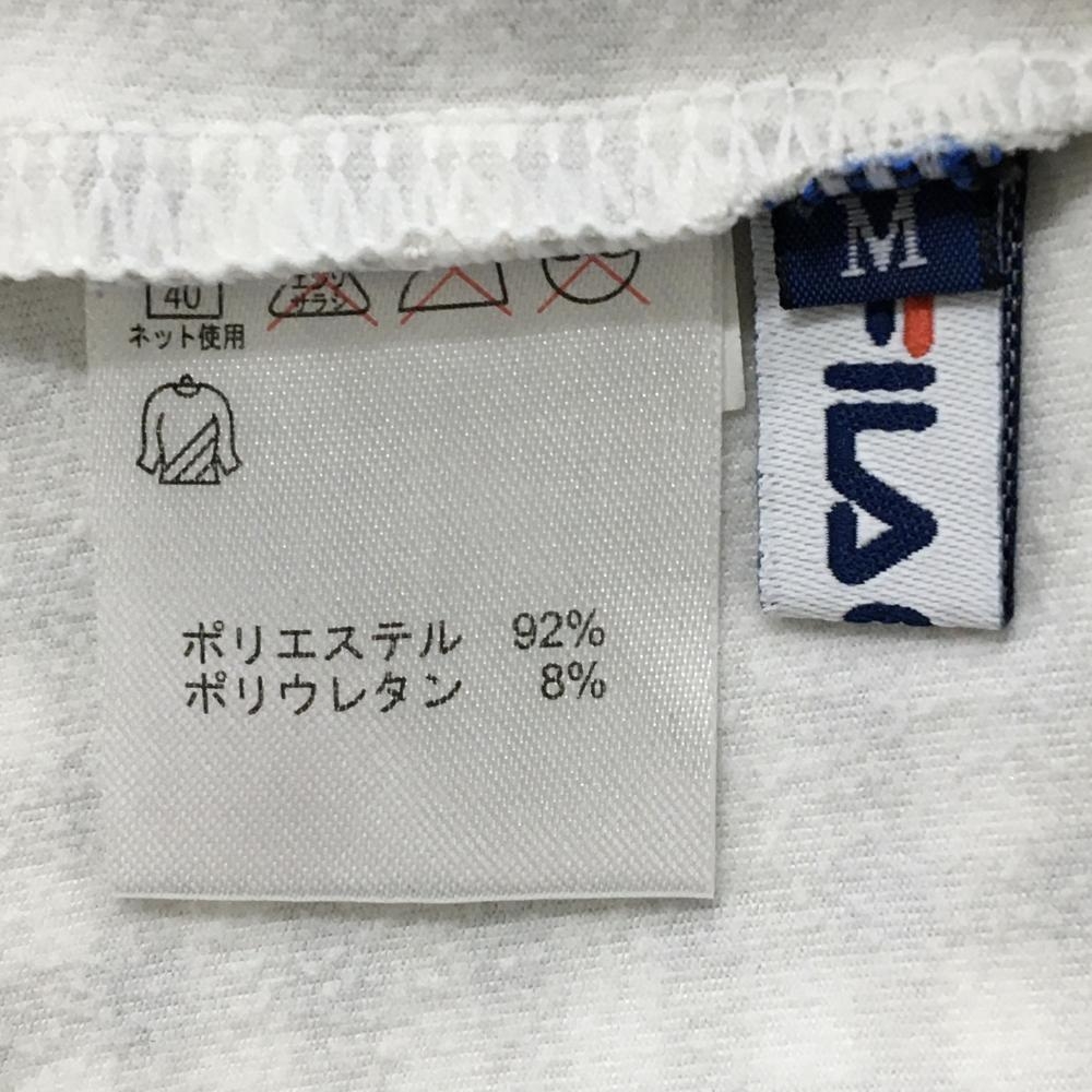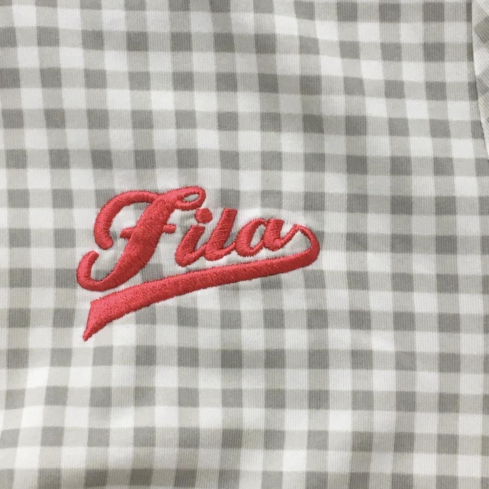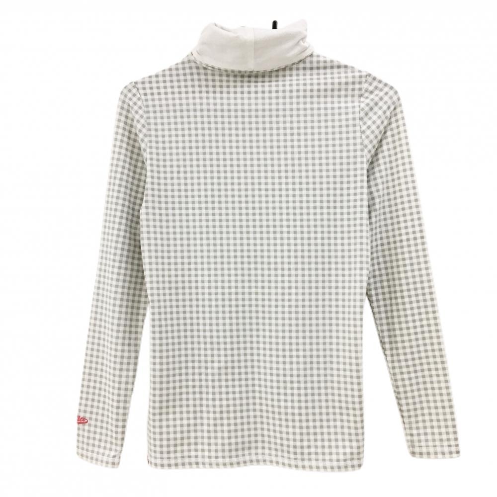 【美品】フィラゴルフ 長袖ハイネックシャツ 白×ライトグレー チェック ロゴ刺しゅう 裏微起毛 レディース M ゴルフウェア FILA GOLF