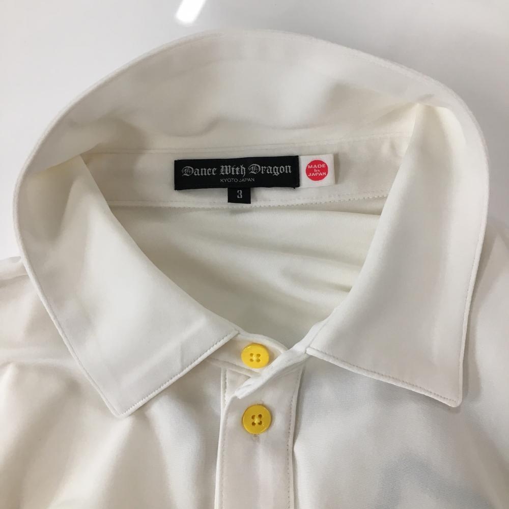 ダンスウィズドラゴン 半袖ポロシャツ 白×黒 ニコちゃん パイルワッペン メンズ 3(L) ゴルフウェア Dance With Dragon