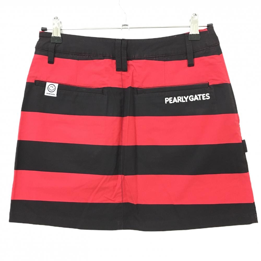 パーリーゲイツ スカート 黒×レッド ボーダー 内側ニコちゃん 色褪せ レディース ゴルフウェア PEARLY GATES