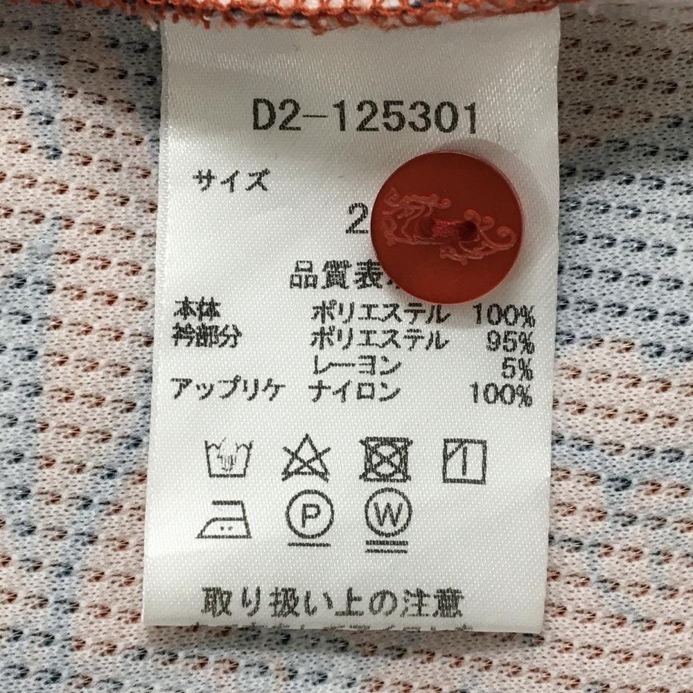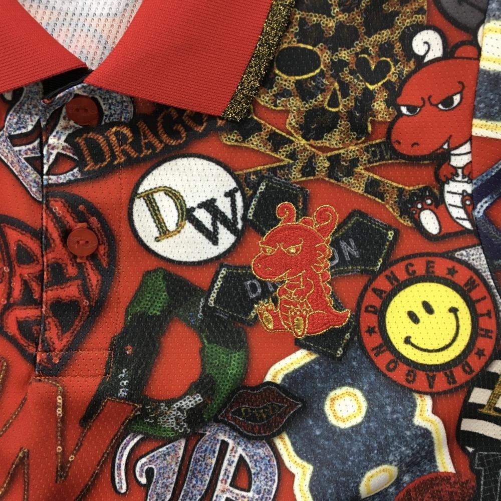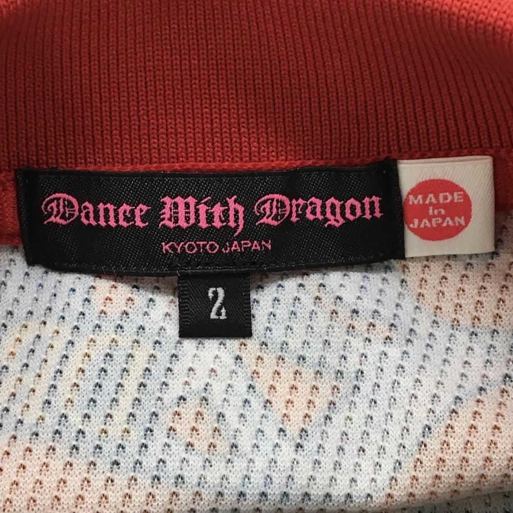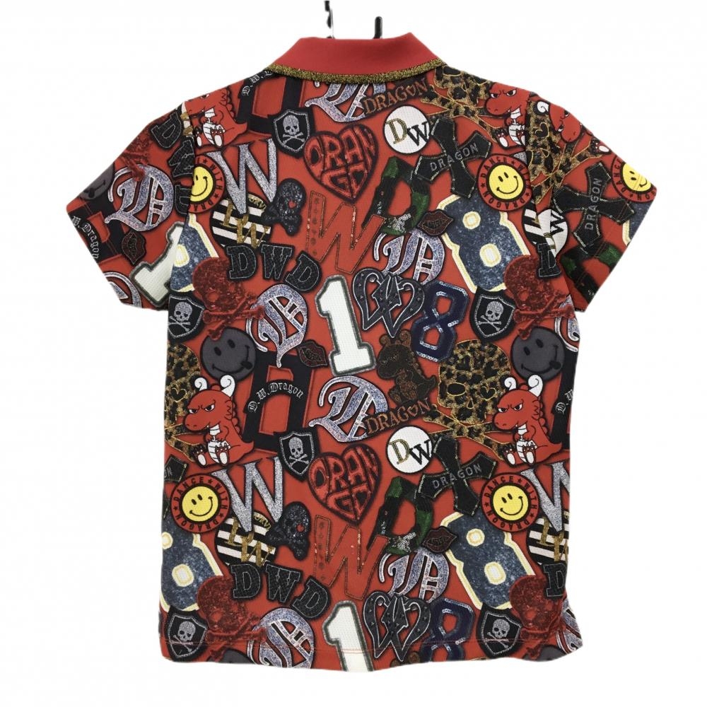 【超美品】ダンスウィズドラゴン 半袖ポロシャツ レッド×ネイビー系×イエロー 総柄 レディース 2(M) ゴルフウェア Dance With Dragon