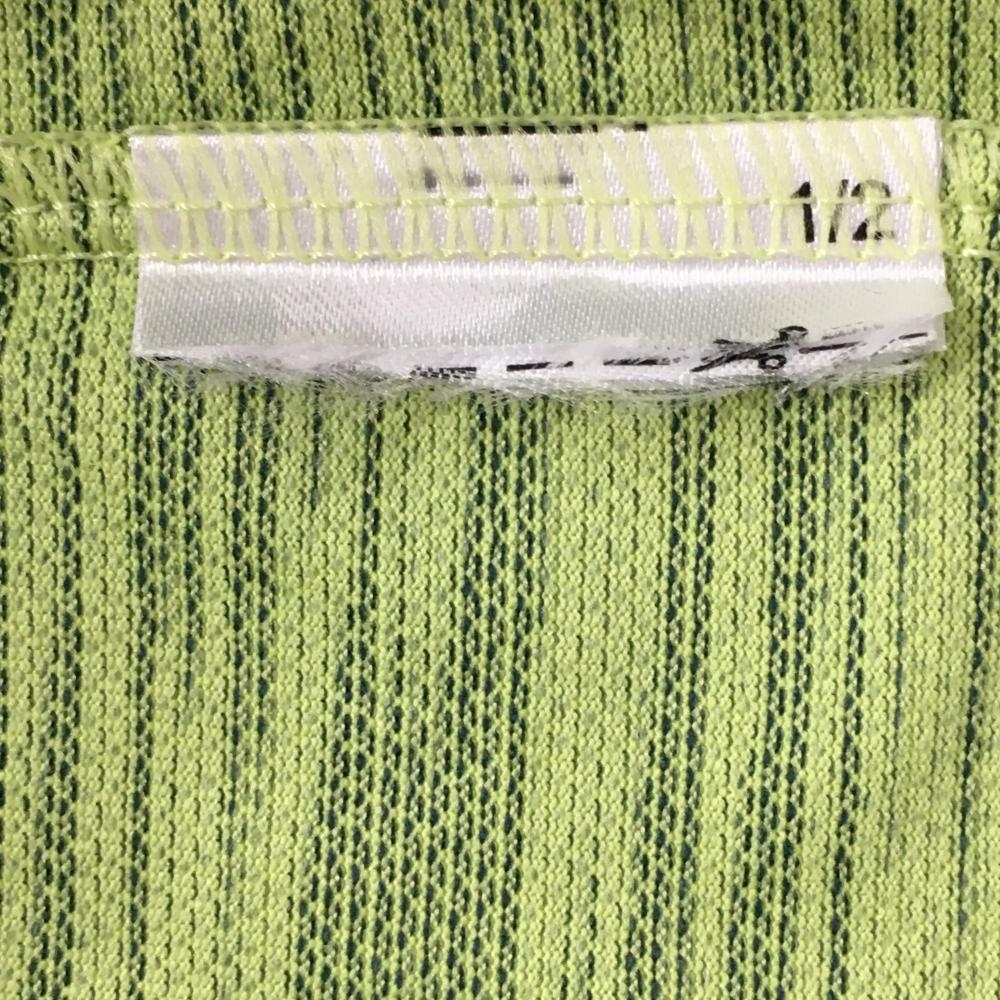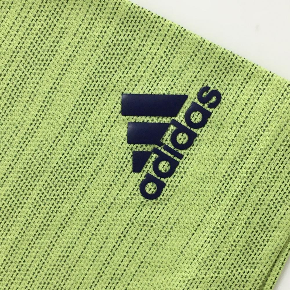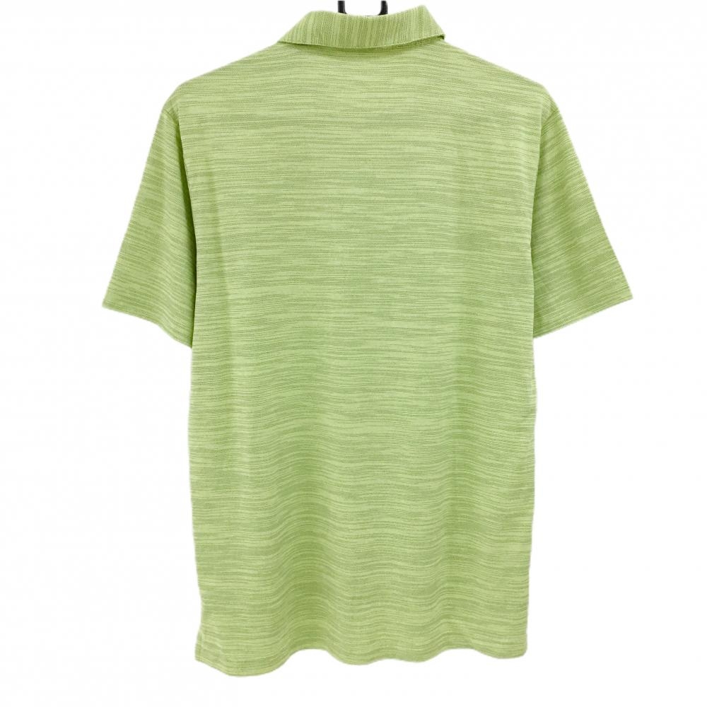 【美品】アディダス 半袖ポロシャツ ライトグリーン×黒 細ボーダー調 袖ロゴ メンズ ゴルフウェア adidas