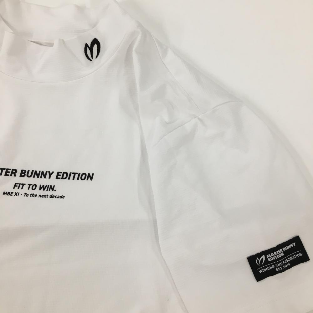 【超美品】マスターバニー 半袖ハイネックシャツ 白 フロントロゴ ストレッチ メンズ 4(M) ゴルフウェア MASTER BUNNY EDITION