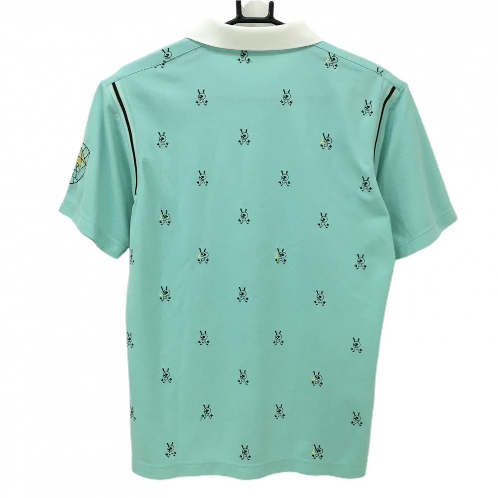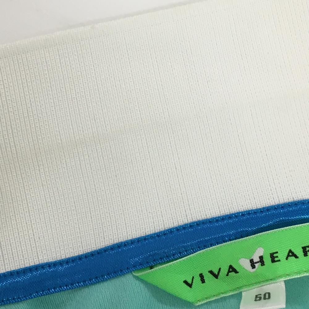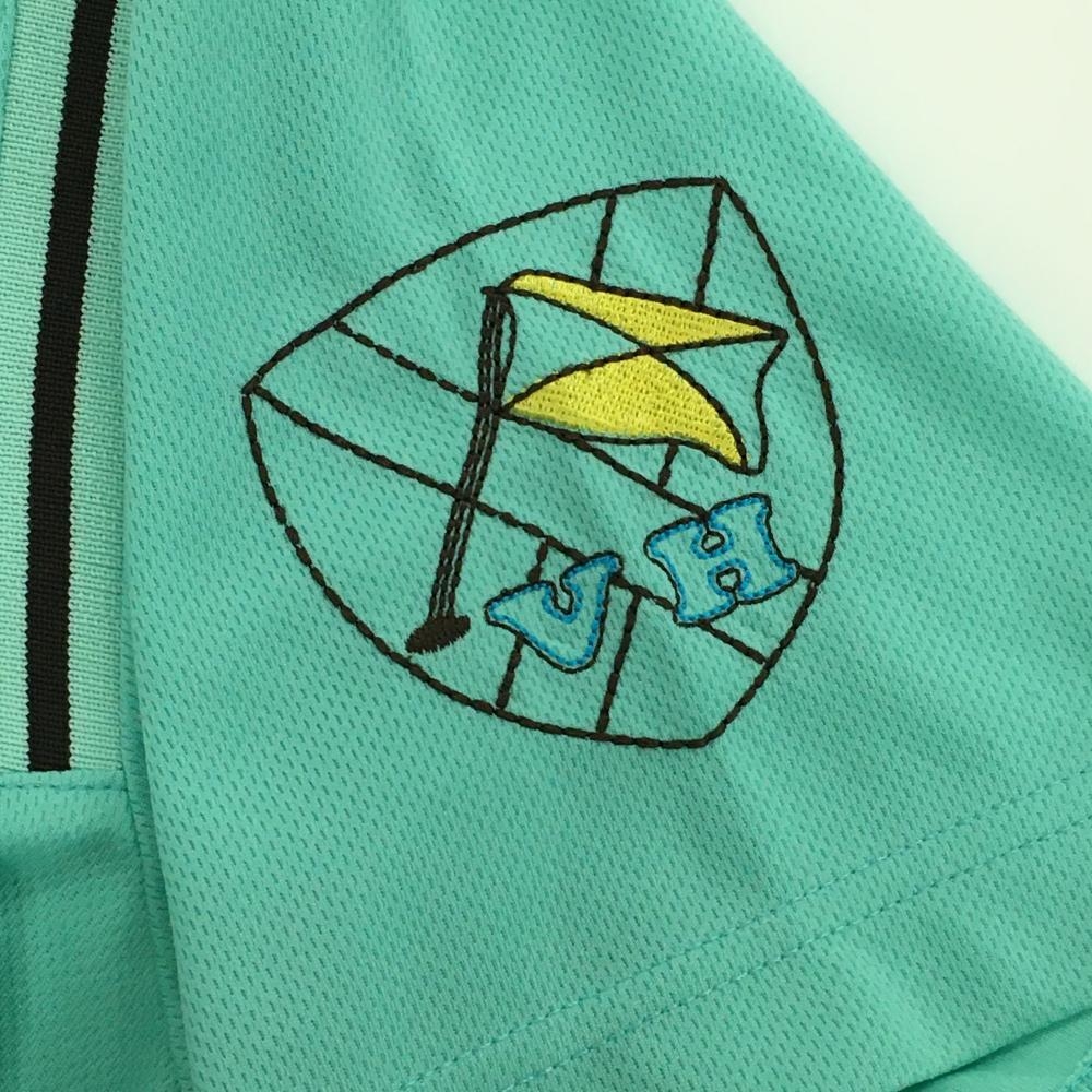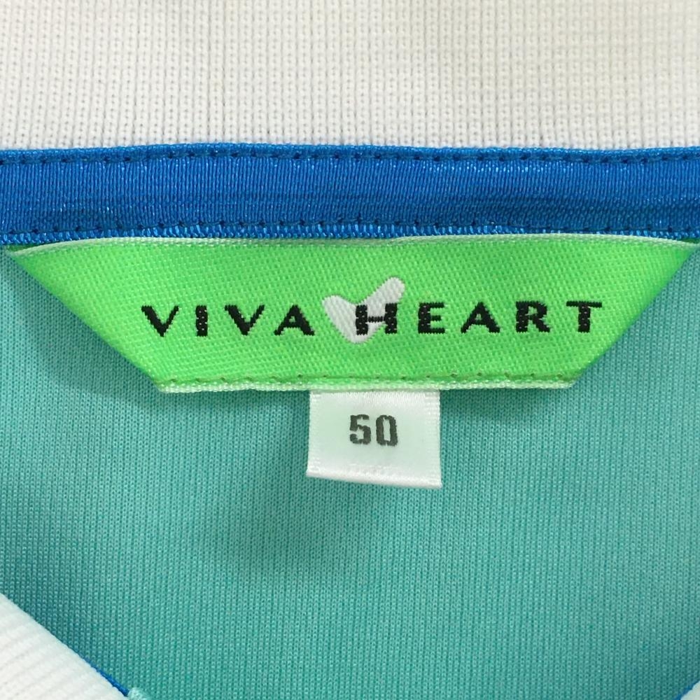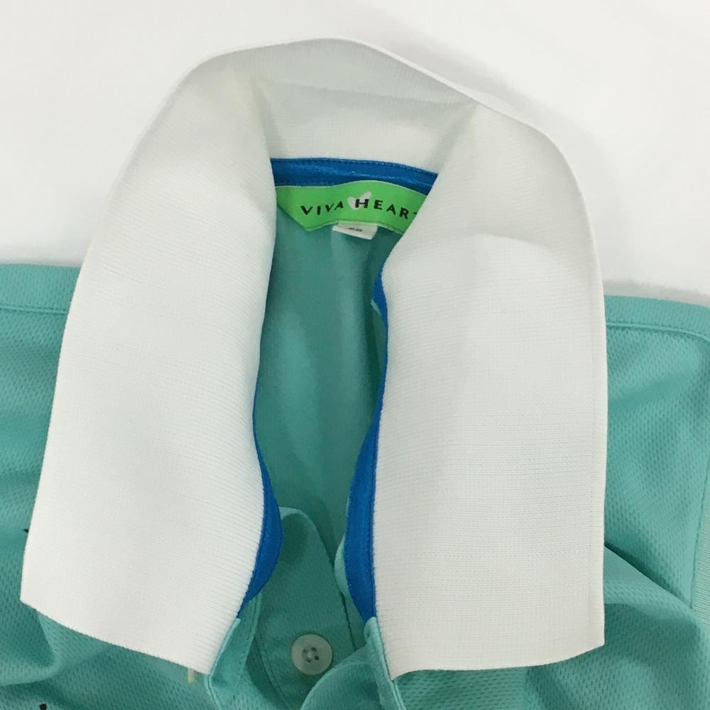 ビバハート 半袖ポロシャツ ミントグリーン×ブラウン 刺しゅう総柄 肩ライン メンズ 50(L) ゴルフウェア VIVA HEART